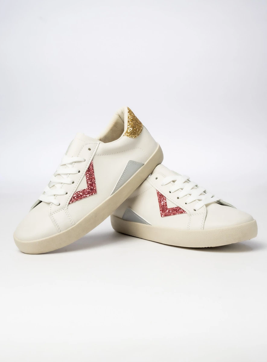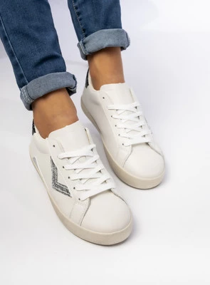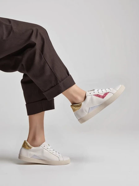 Damskie Sneakersy – Białe, Brokatowe Wstawki Sienna PEACHPUFF