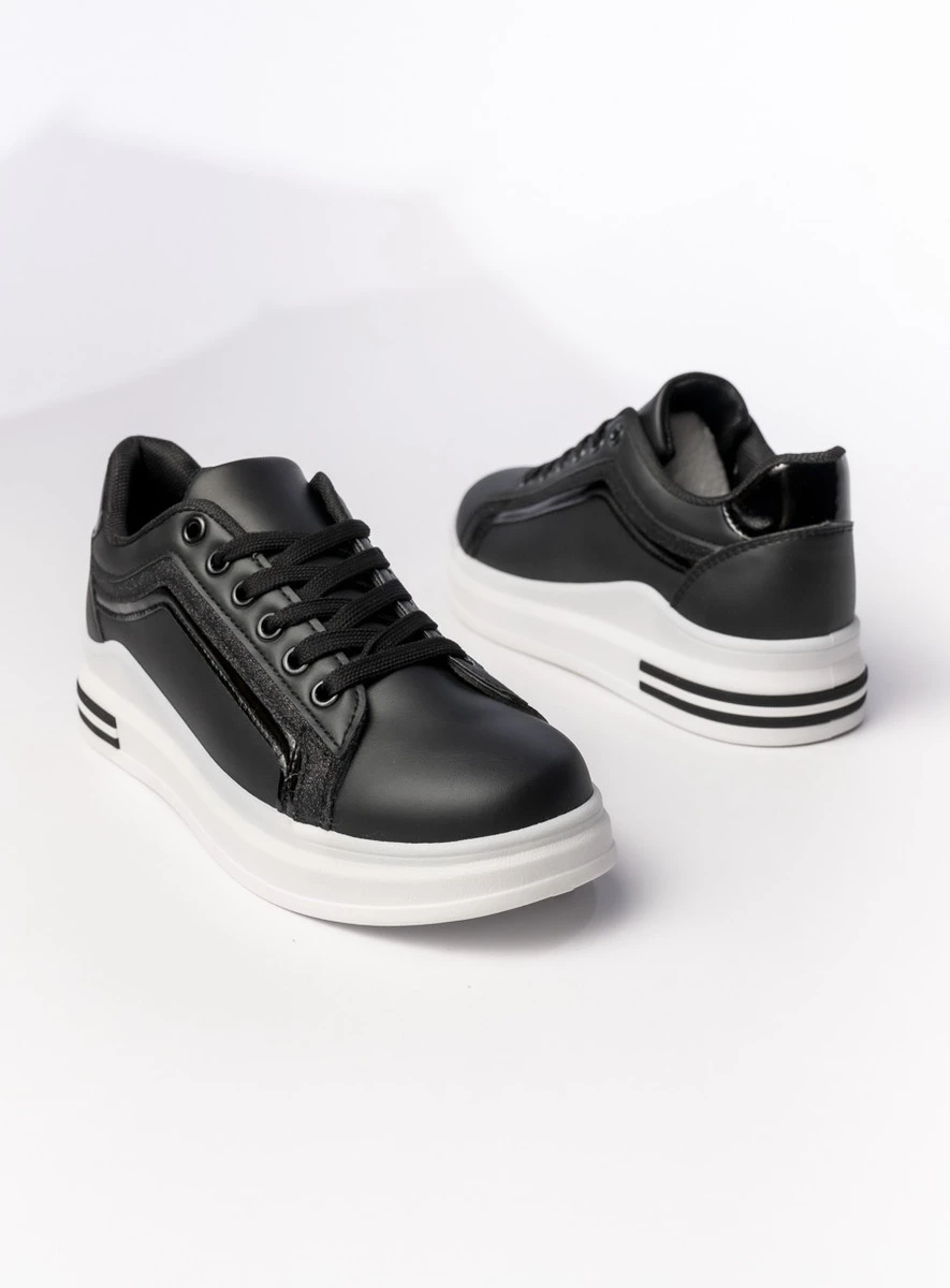 NOX BLACK to nowoczesne sneakersy o minimalistycznym, a zarazem stylowym designie. Klasyczna czerń połączona z białą, grubą podeszwą nadaje im wyjątkowego charakteru, który świetnie komponuje się zarówno z casualowymi, jak i sportowymi stylizacjami. Cholewka wykonana z wysokiej jakości skóry ekologicznej oraz tekstylne wstawki gwarantują wygodę i przewiewność przez cały dzień.