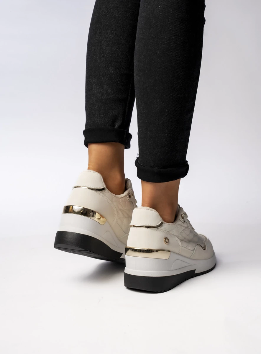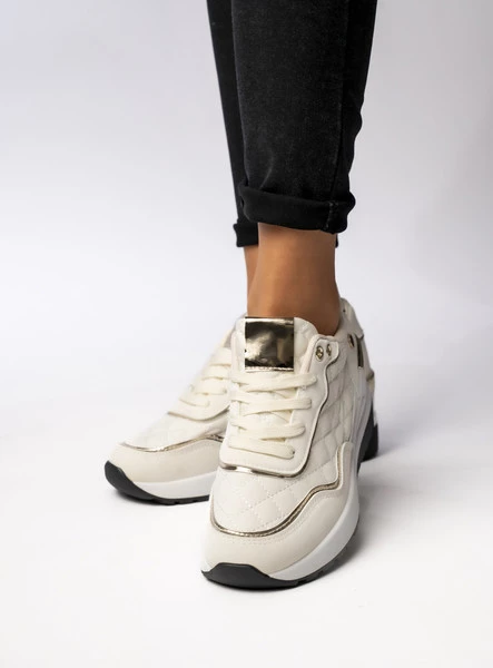 VELTARA APRICOT to stylowe sneakersy, które łączą sportową wygodę z nutą luksusu. Ich jasny, kremowo-morelowy kolor w połączeniu z eleganckimi złotymi detalami sprawia, że są idealnym wyborem zarówno do codziennych, jak i bardziej wyszukanych stylizacji. Pikowana faktura dodaje im unikalnego charakteru, a miękka wkładka zapewnia komfort przez cały dzień.