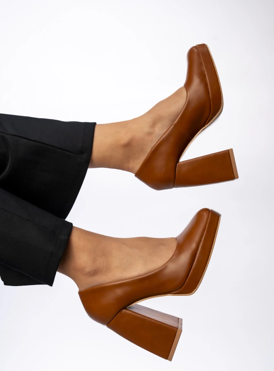 ESME CAMEL to klasyczne czółenka na wysokim słupku, które dodadzą szyku każdej stylizacji. Ich ciepły, karmelowy odcień sprawia, że są uniwersalne i idealnie pasują zarówno do eleganckich, jak i casualowych outfitów. Stabilny obcas oraz delikatna platforma zapewniają wygodę nawet przy długim noszeniu.