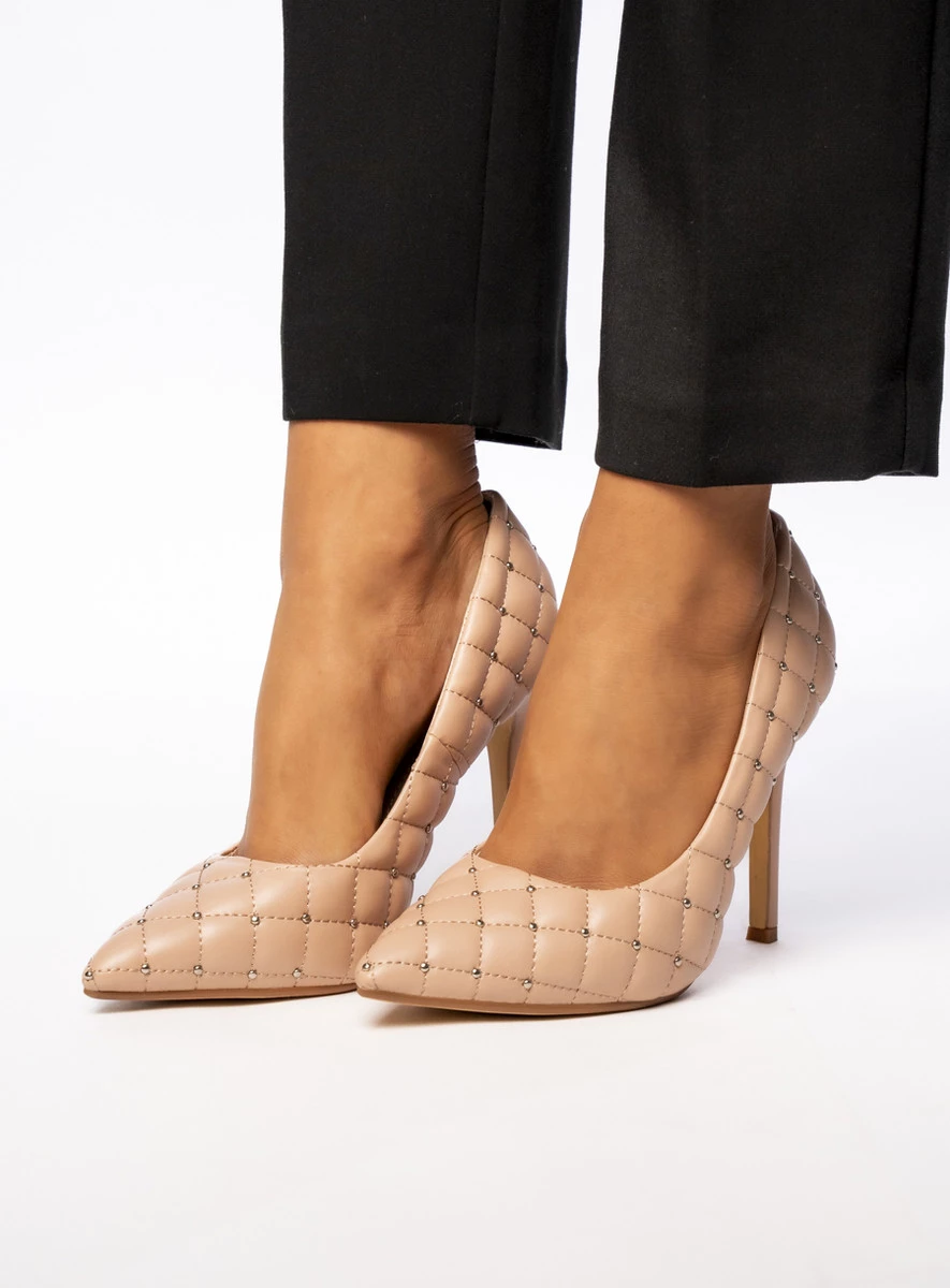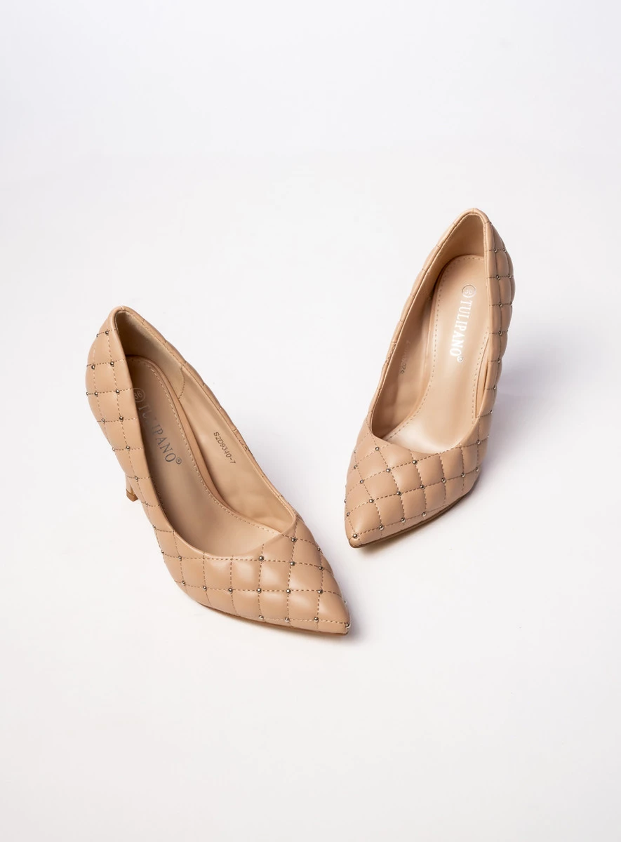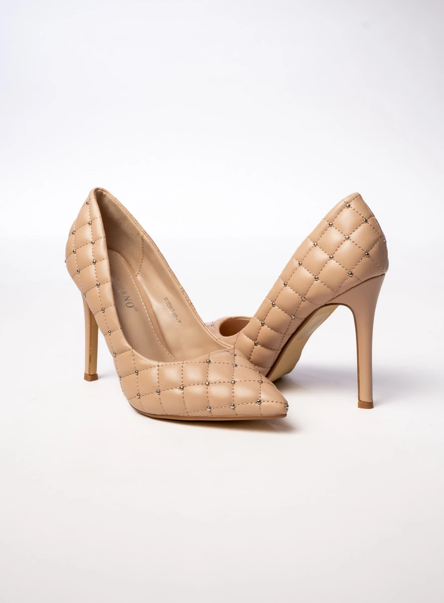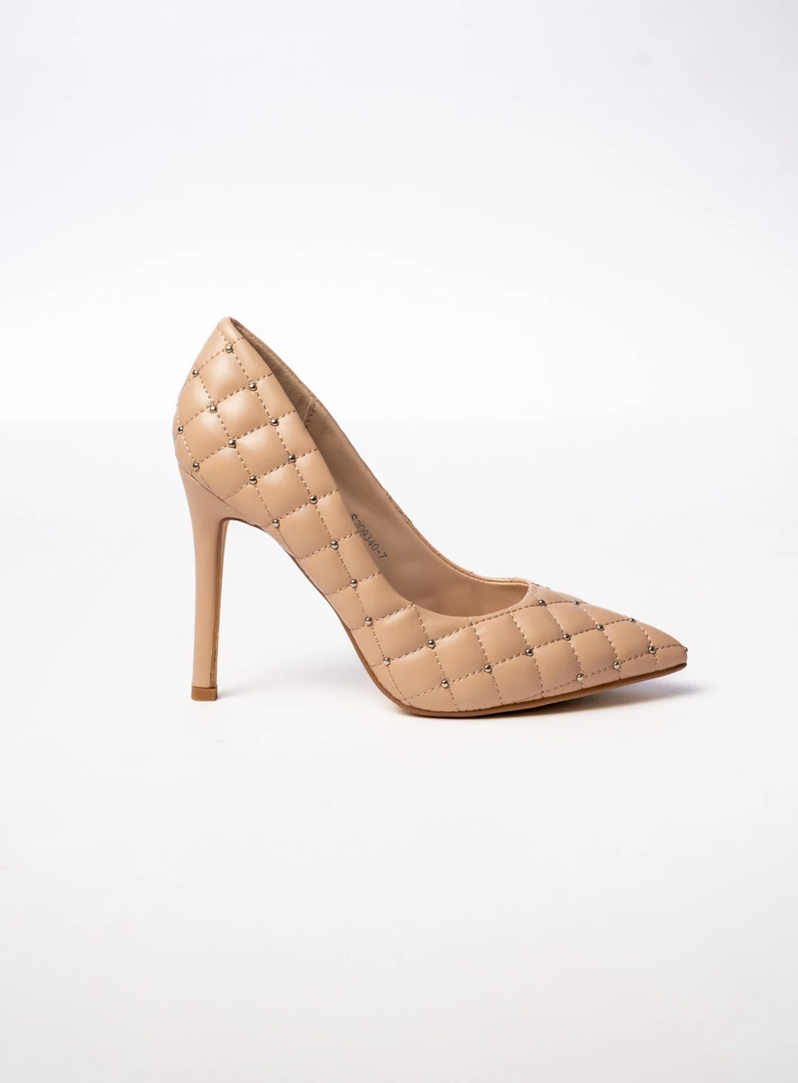 LUMORA NUDE to wyjątkowe czółenka o pikowanym wzorze z subtelnymi metalowymi zdobieniami. Ich elegancki fason i smukła szpilka sprawiają, że są idealnym wyborem na wyjątkowe okazje oraz formalne stylizacje.