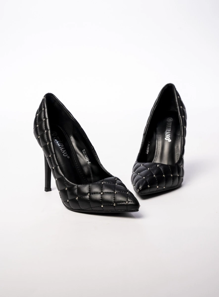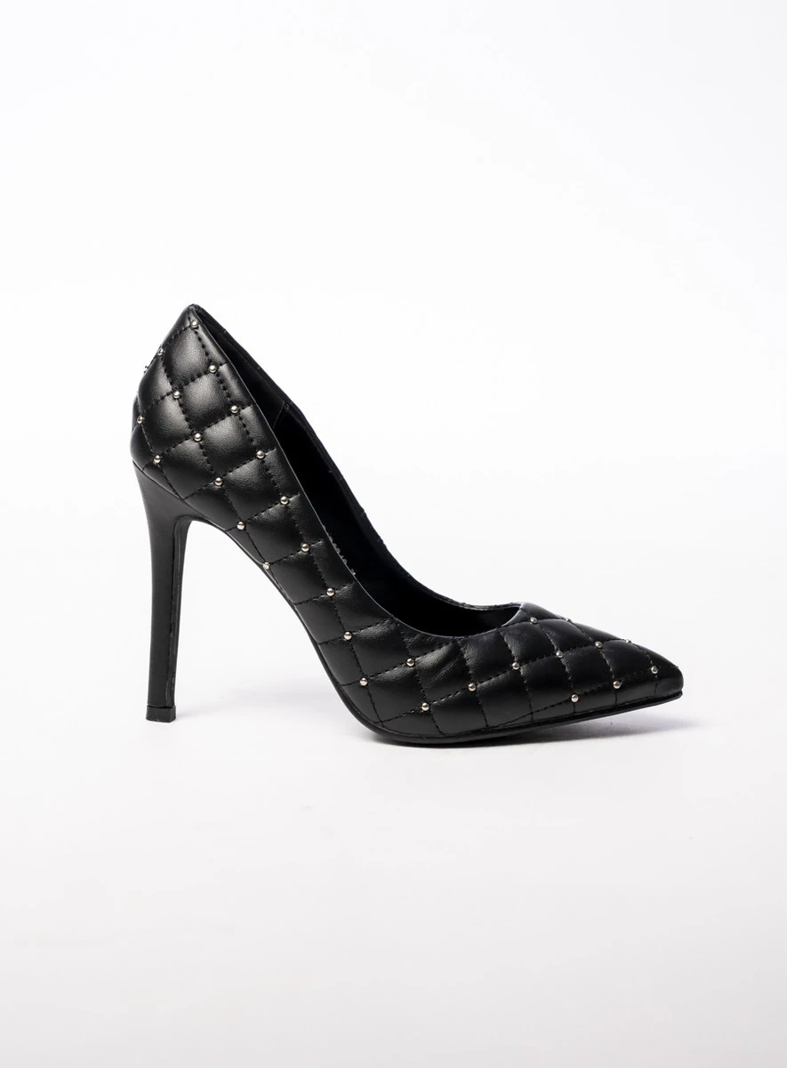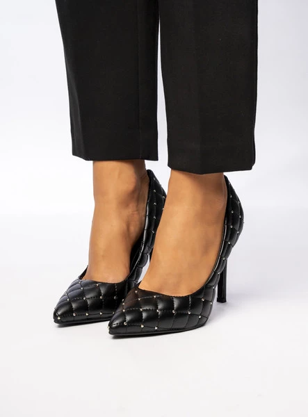 LUMORA BLACK to eleganckie szpilki na wysokim obcasie, ozdobione luksusowym pikowaniem z metalowymi detalami. Ich klasyczny, czarny kolor w połączeniu z wyjątkowym designem sprawia, że świetnie pasują zarówno do wieczorowych stylizacji, jak i eleganckich biznesowych outfitów. To idealne buty dla kobiet, które chcą dodać szyku i wyrafinowania swojemu wyglądowi.