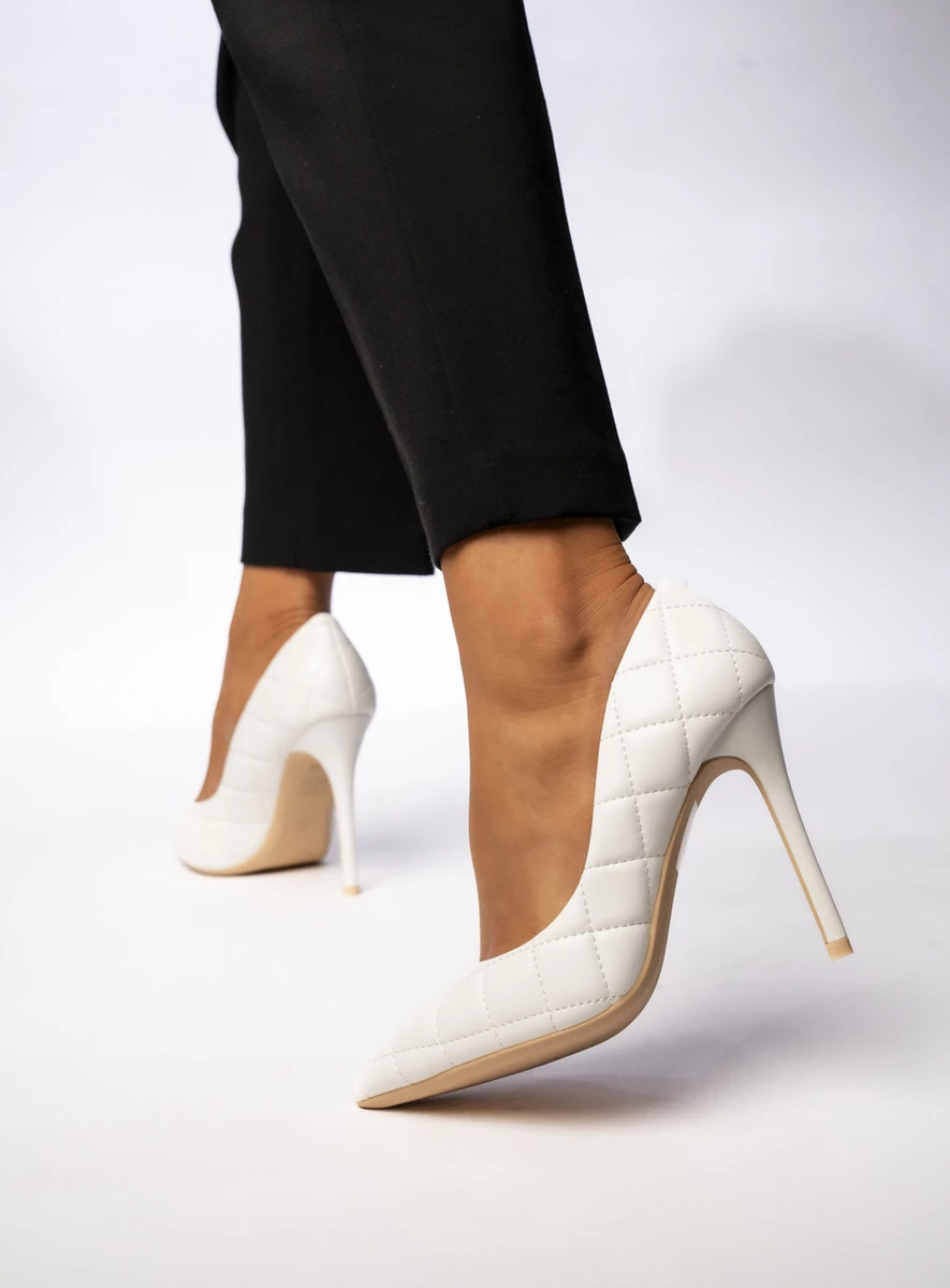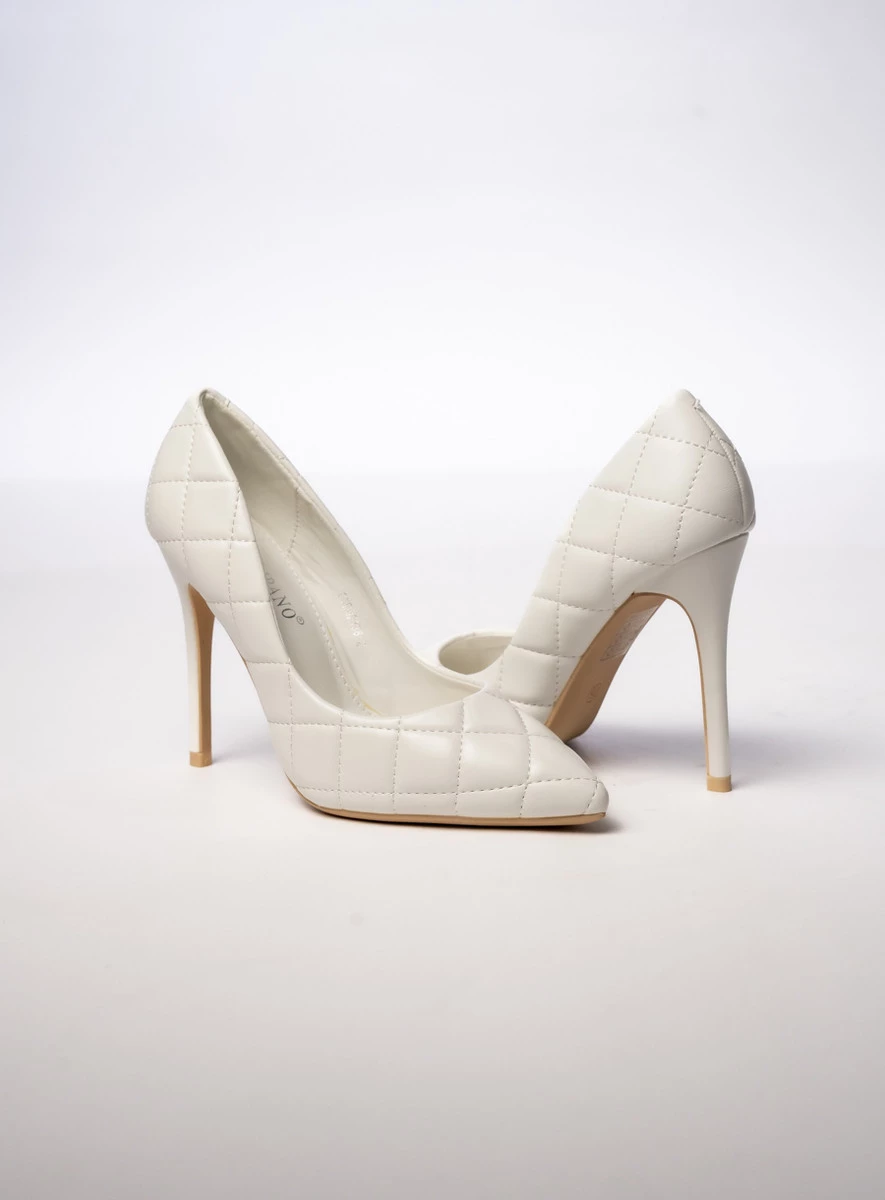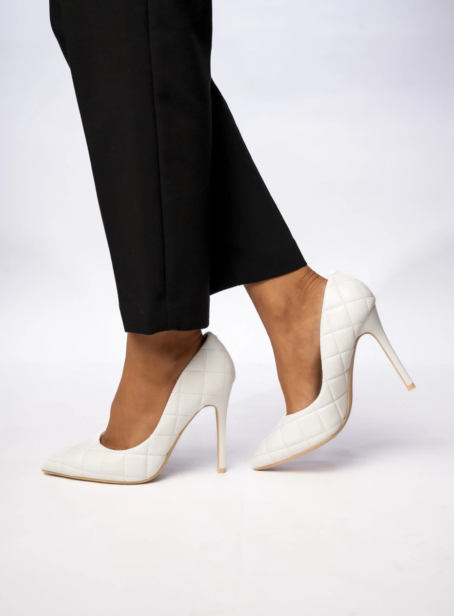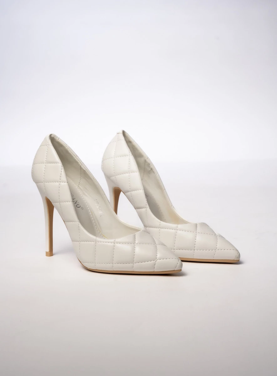 NOVARA WHITE to eleganckie i szykowne czółenka na wysokiej szpilce, idealne dla kobiet ceniących klasykę z nowoczesnym akcentem. Pikowany wzór dodaje im luksusowego charakteru, a śnieżnobiały kolor sprawia, że doskonale komponują się zarówno z wieczorowymi sukniami, jak i eleganckimi stylizacjami biznesowymi. To doskonały wybór dla kobiet, które chcą dodać stylu i wyrafinowania swoim outfitom.