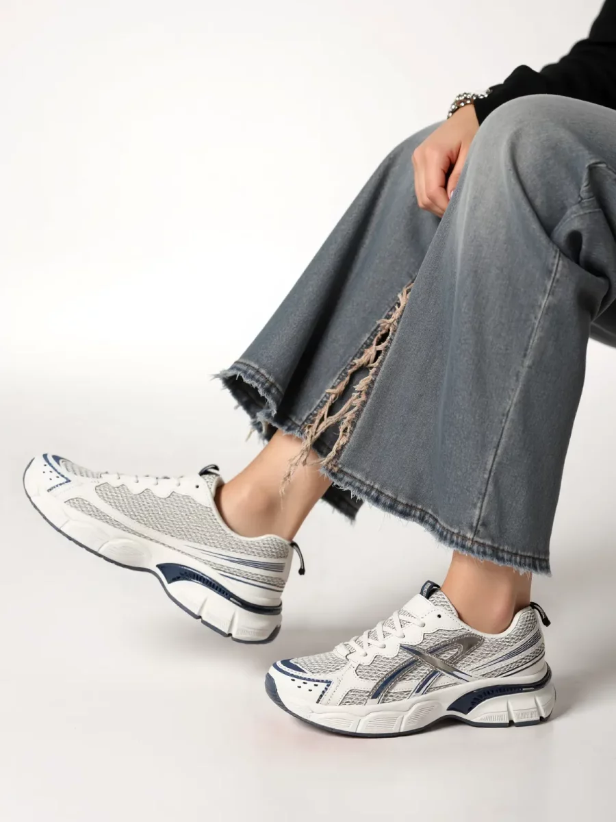 Damskie sneakersy VELOX BLUE to idealne połączenie komfortu i nowoczesnego designu. Ich przewiewna siateczkowa cholewka zapewnia doskonałą wentylację, a kontrastujące niebieskie detale nadają im unikalnego charakteru. Gruba, amortyzująca podeszwa gwarantuje wygodę przez cały dzień, czyniąc je doskonałym wyborem zarówno na co dzień, jak i do aktywnego trybu życia.