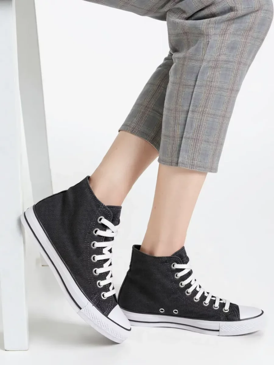 Czarne trampki RAVEN BLACK to klasyczny wybór dla kobiet, które cenią wygodę i styl. Wykonane z połączenia skóry ekologicznej i materiału tekstylnego, zapewniają odpowiednią przewiewność oraz komfort noszenia przez cały dzień. Klasyczne sznurowanie umożliwia idealne dopasowanie, a solidna podeszwa z tworzywa sztucznego gwarantuje trwałość i stabilność. Doskonale sprawdzą się w casualowych i streetwearowych stylizacjach.