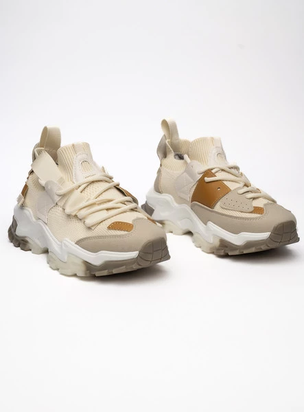 Damskie sneakersy ZELOS BEIGE to połączenie futurystycznego designu z komfortem noszenia. Ich przewiewna, dzianinowa cholewka w odcieniach beżu dopasowuje się do stopy niczym skarpeta, zapewniając maksymalną wygodę. Mocna podeszwa o dynamicznym kształcie amortyzuje każdy krok, a detale w postaci szerokich taśm i kontrastowych wstawek dodają butom unikalnego charakteru. Idealne do miejskich stylizacji i aktywnego trybu życia.