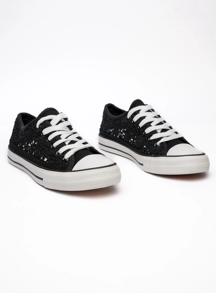 Damskie trampki BANDANA BLACK to wyjątkowe połączenie klasycznego fasonu z modnym wzorem bandany. Czarna cholewka ozdobiona stylowym, paisleyowym nadrukiem nadaje butom oryginalny wygląd. Dzięki klasycznej gumowej podeszwie i sznurowanemu zapięciu model ten jest idealnym wyborem dla kobiet ceniących komfort i styl.