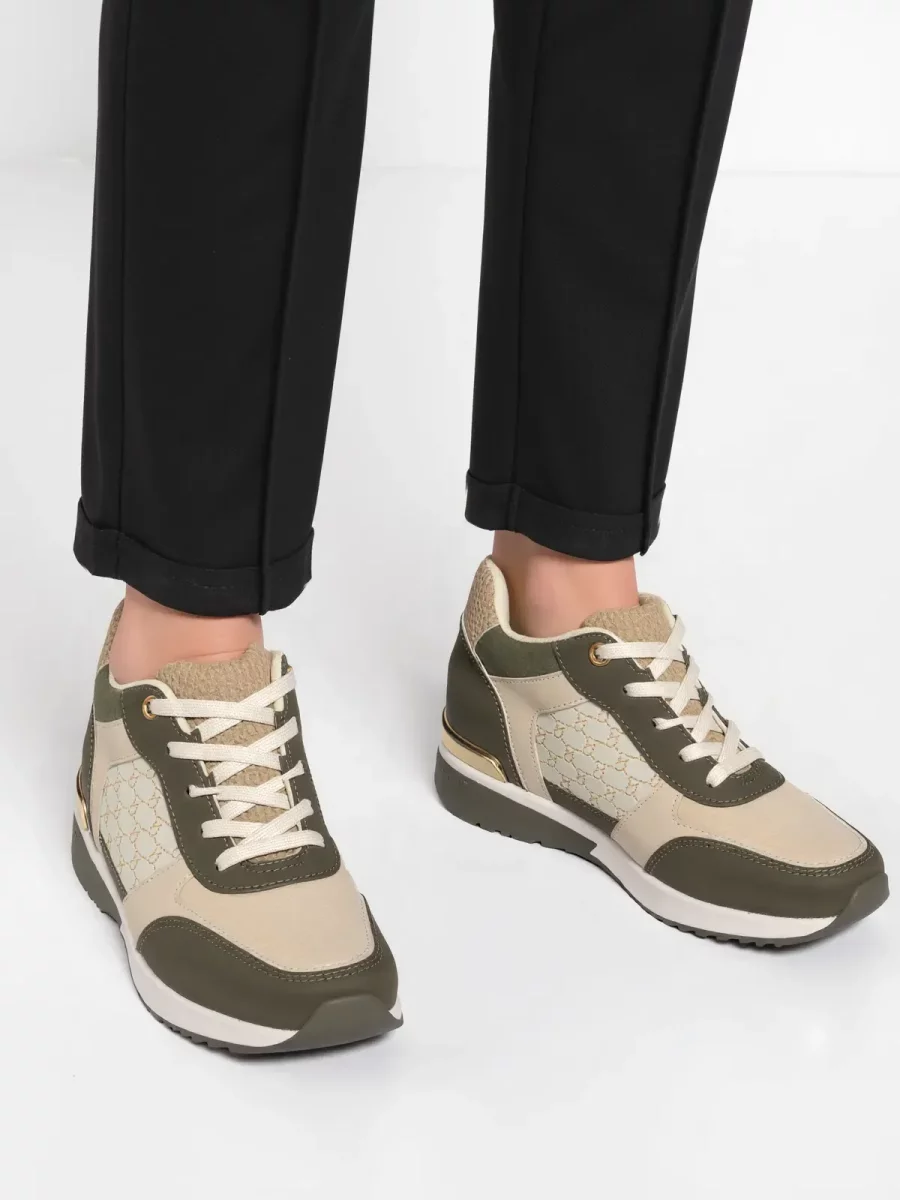 Eleganckie i wygodne damskie sneakersy w odcieniach zieleni i beżu to idealne połączenie stylu i komfortu. Dzięki modnemu designowi oraz wysokiej jakości wykonania doskonale sprawdzą się na co dzień, zapewniając wygodę przez cały dzień. Subtelne złote detale dodają im wyjątkowego charakteru, a solidna podeszwa gwarantuje stabilność i wygodę.