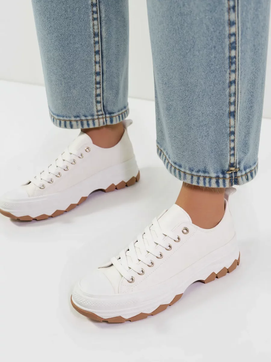 Nowoczesne damskie trampki STREVO WHITE w klasycznym białym kolorze z kontrastową podeszwą to idealne obuwie na co dzień. Ich minimalistyczny design w połączeniu z grubą, żłobioną podeszwą sprawia, że świetnie pasują do casualowych i streetwearowych stylizacji. Dzięki solidnej konstrukcji i wygodnej platformie zapewniają komfort noszenia przez cały dzień.