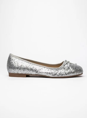 Baleriny ELVINA w złotym kolorze to połączenie klasyki i blasku, które podkreśli każdą stylizację. Wykonane z tkaniny pokrytej błyszczącym brokatem, przyciągają uwagę i nadają wyjątkowy charakter. Kokardka na nosku dodaje im dziewczęcego uroku, a płaska podeszwa zapewnia komfort noszenia przez cały dzień. Idealne zarówno na co dzień, jak i na specjalne okazje.