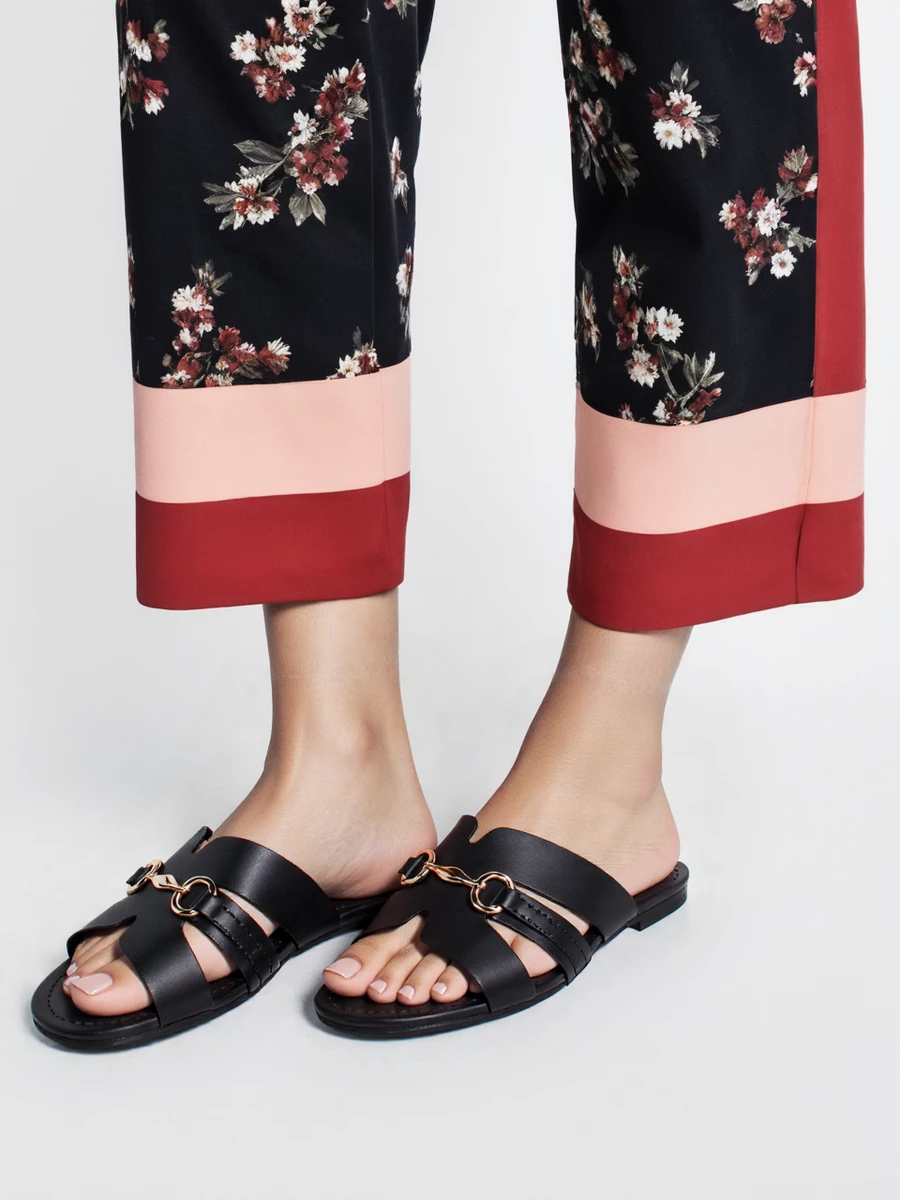 Klapki eleganckie ze skórzaną konstrukcją i metalowymi ozdobami Black