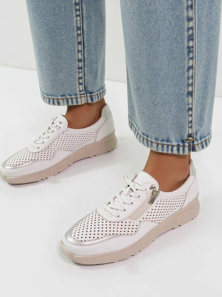 Odkryj białe sneakersy Aurora, które łączą styl i wygodę. Ich perforowany design zapewnia przewiewność, idealną na ciepłe dni. Doskonałe na co dzień, te buty dodadzą świeżości każdej stylizacji, łącząc funkcjonalność i modę.