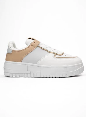 Damskie Sneakersy OASIS KHAKI to połączenie prostoty i subtelnego charakteru, który sprawdzi się w codziennych stylizacjach. Dominujący biały kolor przełamany jest modnymi, khaki-beżowymi akcentami, dodającymi butom oryginalności i lekkości. Dzięki solidnej podeszwie i wygodnemu krojowi, te sneakersy zapewniają komfort noszenia przez cały dzień.