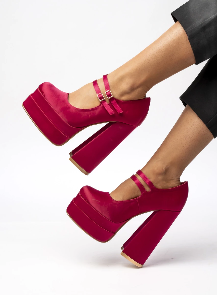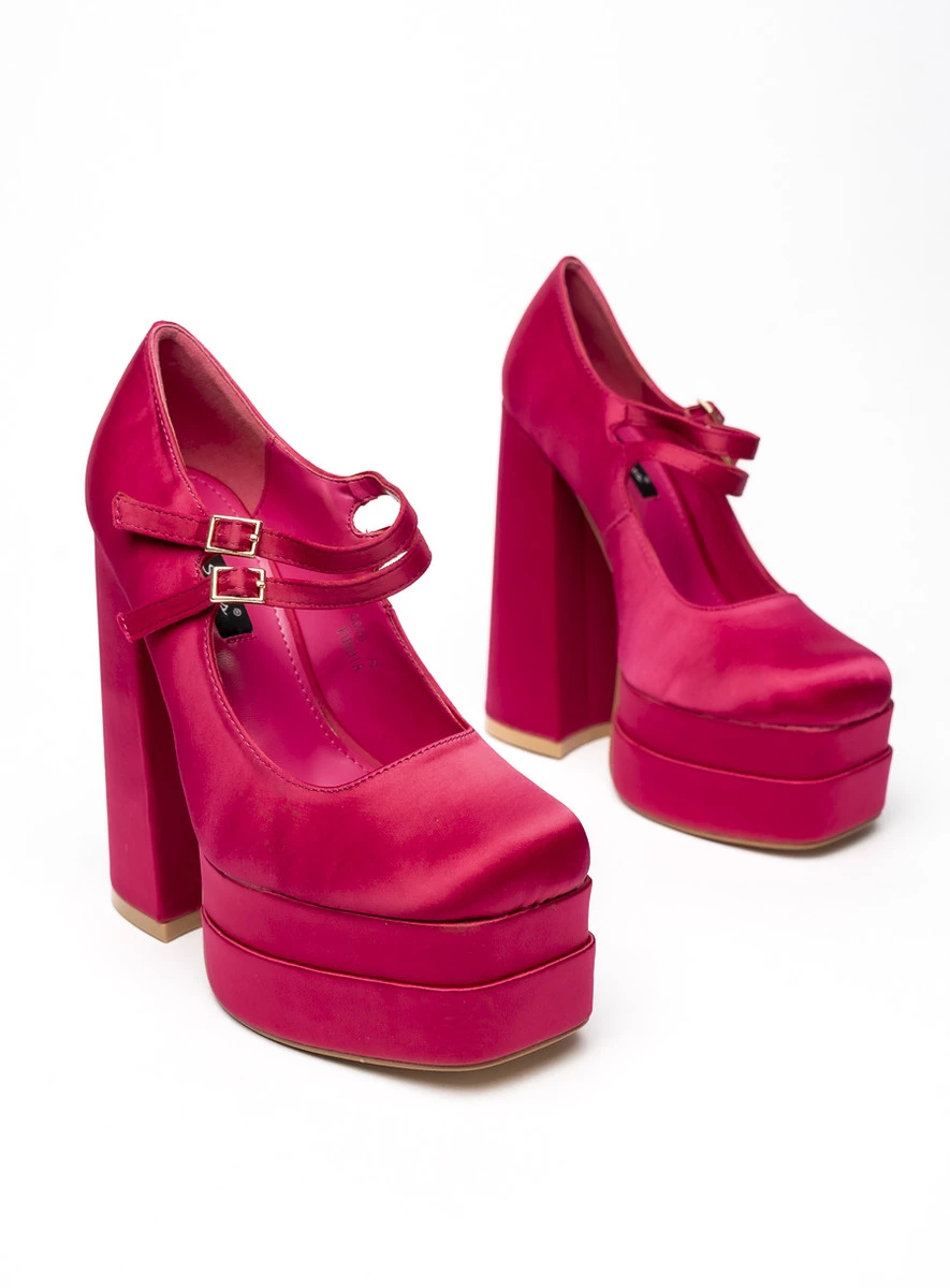 Damskie Czółenka PRANDI FUCHSIA to niezwykle efektowny model, który łączy klasyczny fason Mary Jane z intensywnym, fuksjowym odcieniem. Masywna platforma oraz słupek zapewniają stabilność i komfort, a podwójny pasek ze sprzączkami dodaje całości retro uroku i oryginalnego charakteru. Wierzch wykonany z tkaniny satynowej nadaje butom wyjątkowego połysku i elegancji, czyniąc je idealnym wyborem na wieczorne wyjścia oraz wyjątkowe okazje.