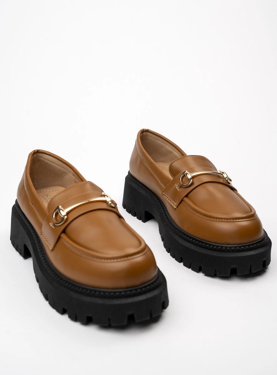Damskie Mokasyny CARLA CAMEL to doskonałe połączenie klasycznego fasonu i nowoczesnych akcentów. Ciepły, camelowy odcień ekoskóry w połączeniu ze złotą ozdobą na podbiciu nadaje butom szyku, dzięki czemu sprawdzą się zarówno w codziennych stylizacjach, jak i bardziej eleganckich zestawach. Pogrubiona podeszwa gwarantuje komfort noszenia przez cały dzień, a wsuwana konstrukcja ułatwia szybkie zakładanie.