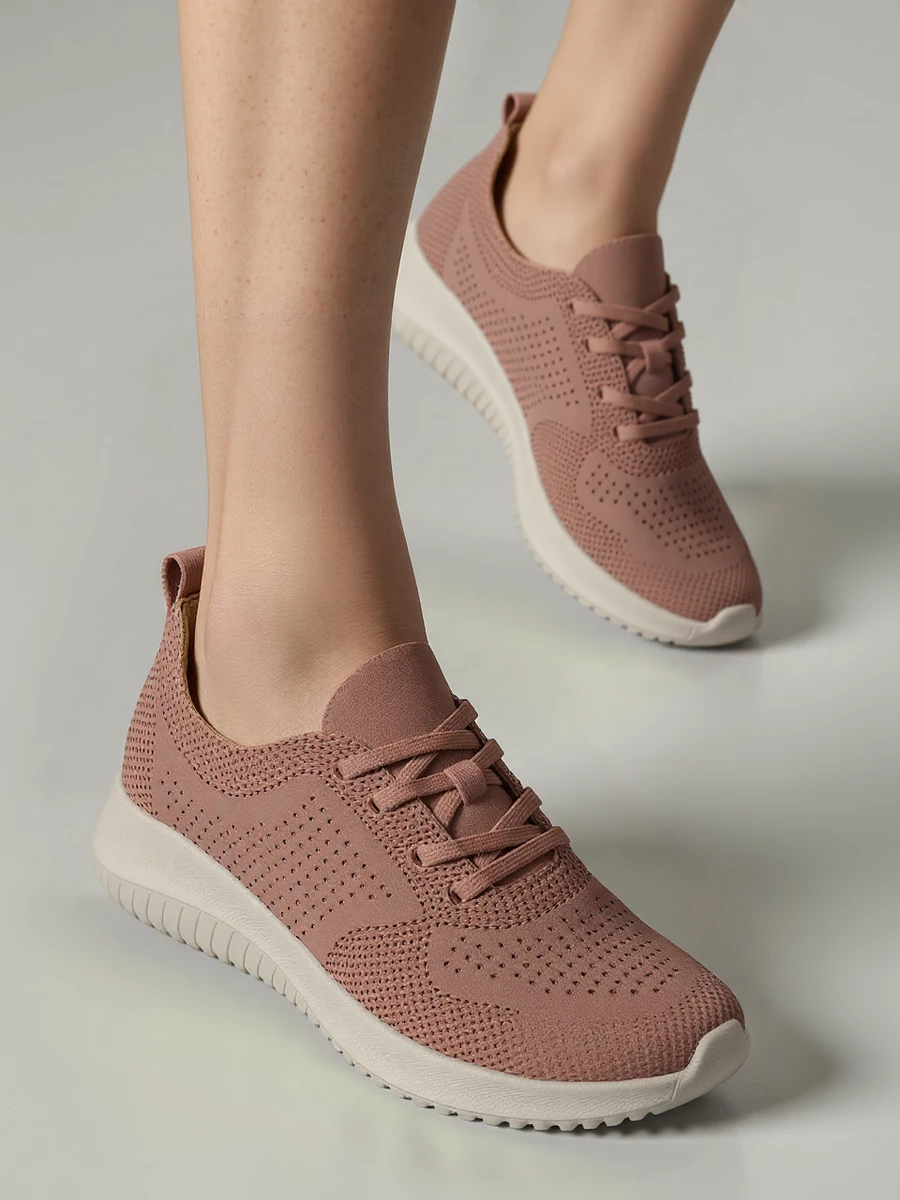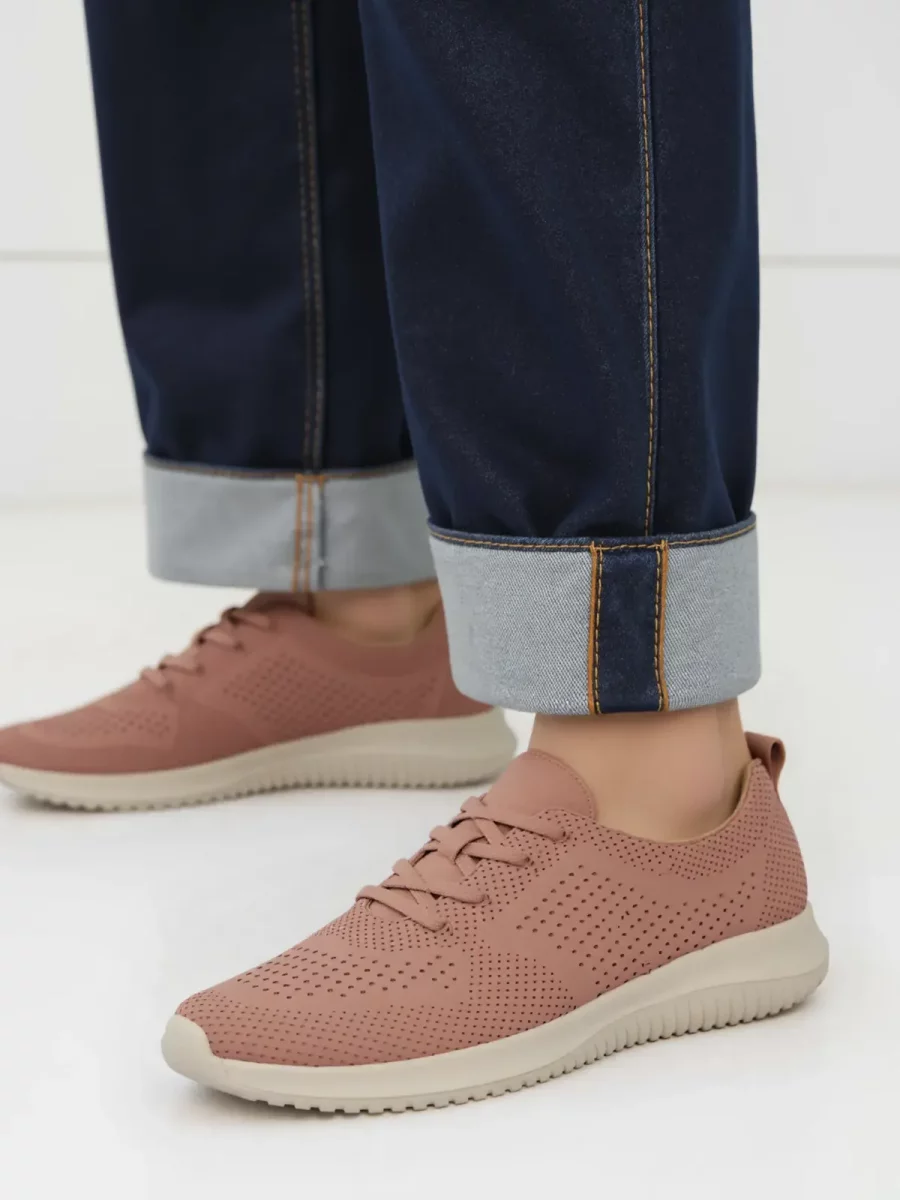Damskie Sneakersy NORA PINK to propozycja dla kobiet ceniących sobie komfort i subtelny, kobiecy styl. Cholewka wykonana z przewiewnego materiału tekstylnego zapewnia doskonałą wentylację, a lekka podeszwa dba o wygodę podczas długich spacerów czy aktywności na co dzień. Delikatny róż w połączeniu z jasną podeszwą sprawia, że buty łatwo dopasować do wielu stylizacji, od sportowych po casualowe.