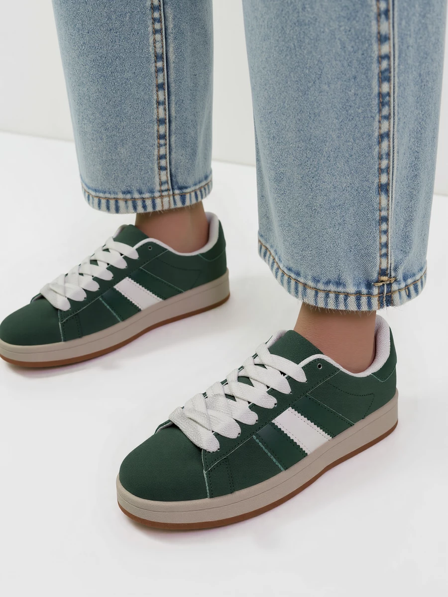 Damskie Sneakersy ADANIS GREEN nawiązują do klasycznego, sportowego stylu, jednocześnie zachowując swój indywidualny charakter. Głęboki zielony odcień cholewki i kontrastujące, białe sznurowadła przyciągają wzrok, a gumowa podeszwa zapewnia stabilność i wygodę przez cały dzień. Wykonane z wytrzymałego materiału, te buty doskonale sprawdzą się w codziennych stylizacjach – od jeansów, po sukienki.