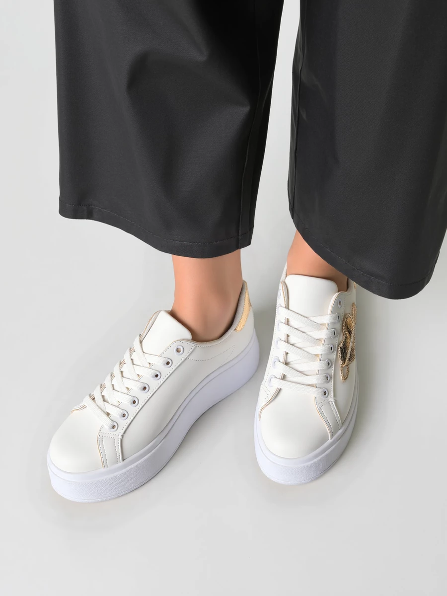 Damskie Sneakersy MIA GOLD to propozycja dla kobiet, które cenią sobie wyjątkowy design oraz komfort noszenia. Oryginalna, złota cholewka wykonana z ekoskóry przyciąga uwagę, dodając butom luksusowego blasku. Idealne do podkreślenia miejskiego stylu, te sneakersy oferują nie tylko modny wygląd, ale również wygodę przez cały dzień.