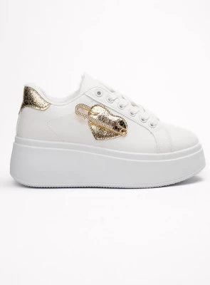 Damskie Sneakersy MIA LEOPARD to połączenie wyrazistego, cętkowanego motywu z uniwersalną formą miejskiego obuwia. Cholewka wykonana z ekoskóry w leopardowym wzorze przyciąga uwagę i nadaje stylizacji oryginalności. Złota ozdoba na boku stanowi subtelny, a zarazem elegancki akcent. Dzięki sznurowanemu zapięciu buty doskonale dopasowują się do stopy, a płaska, gumowa podeszwa zapewnia wygodę przez cały dzień.