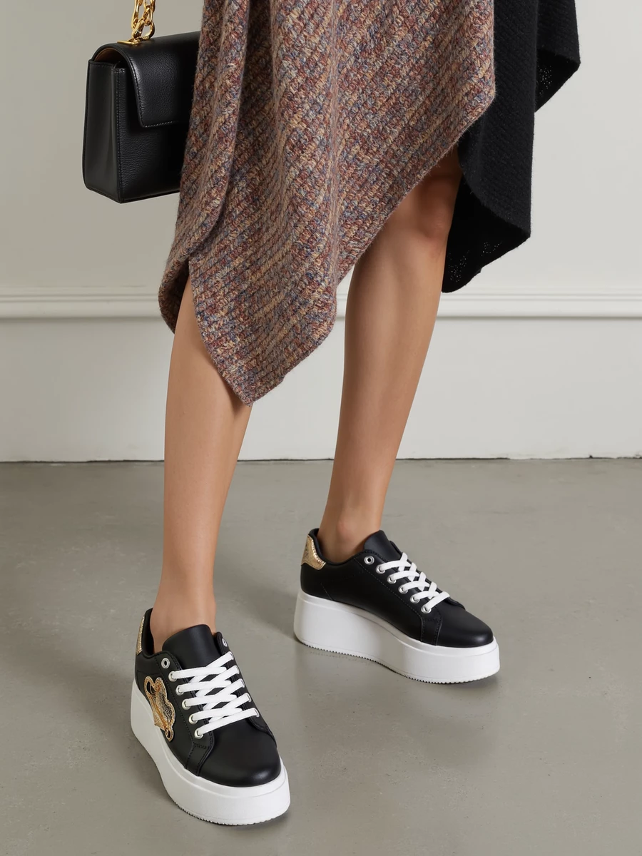 Te eleganckie sandały na koturnie w kolorze Champagne zachwycają plecionym wzorem platformy, który dodaje im wyjątkowego uroku. Metaliczne paski mają subtelny połysk, idealnie komponując się z letnimi stylizacjami.