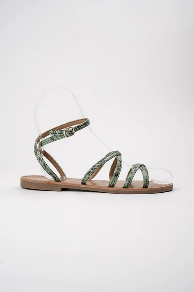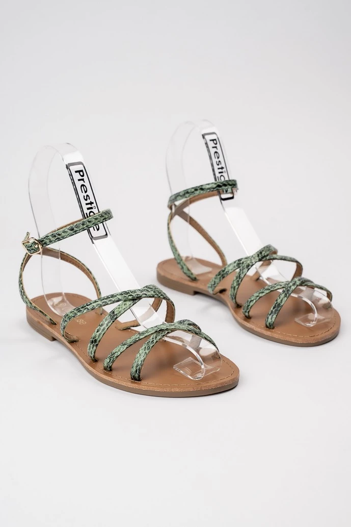 Damskie Sandały ZAYA GREEN to idealne połączenie lekkości, wygody i charakterystycznego stylu. Smukłe paski w odcieniu zieleni z wężowym wzorem efektownie oplatają stopę, tworząc oryginalny i przewiewny fason. Płaska podeszwa zapewnia komfort przez cały dzień, a regulowany pasek wokół kostki gwarantuje dobre dopasowanie. To doskonały wybór na lato – zarówno do zwiewnych sukienek, jak i codziennych stylizacji.