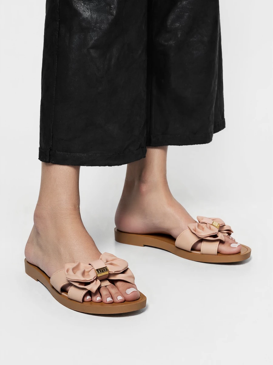Klapki LUXY BOW (różowe) to subtelne, ale efektowne obuwie na lato. Duża kokarda na froncie dodaje im uroku i elegancji, a różowy kolor idealnie pasuje do letnich, lekkich stylizacji. Wykonane z wysokiej jakości tworzywa, będą doskonałym wyborem na wakacyjne wyjazdy, spacery lub na codzienne wyjścia.
