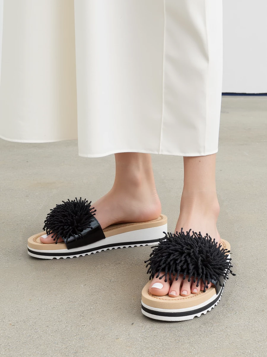 Sandały LUCIA BLACK (czarne) to elegancka propozycja, która łączy wygodę z nowoczesnym stylem. Czarne sandały wyróżniają się subtelnym ozdobnym wzorem w postaci frędzli, które nadają im oryginalności i charakteru. Wykonane z syntetycznego materiału, zapewniają komfort i stabilność, a ich platformowa podeszwa sprawia, że są idealnym wyborem na cieplejsze dni.