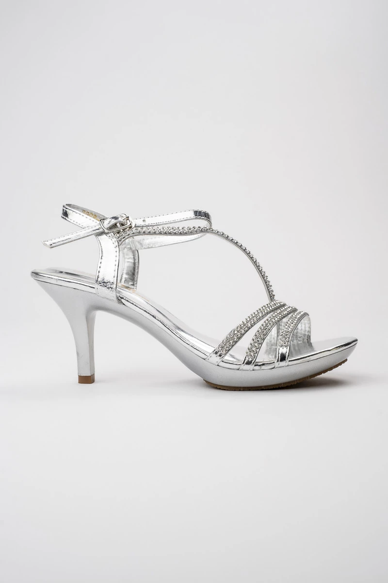 Prezentujemy Sandałki Eleganza, które doskonale sprawdzą się na specjalne okazje. Wykonane z błyszczącego materiału w srebrnym kolorze, które dodaje im elegancji i szyku. Delikatne paseczki ozdobione są drobnymi kamieniami, co sprawia, że są nie tylko wygodne, ale i stylowe. Idealne na wesela czy inne uroczystości.