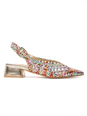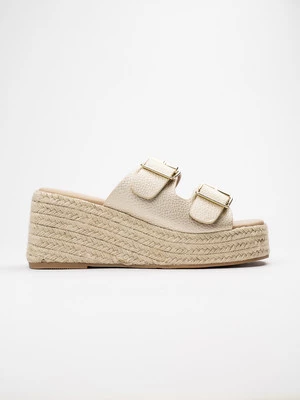 Sandały LUCIA w kolorze GOLD (złoty) to elegancka propozycja na letnie dni. Wierzch butów ozdobiony jest plecionką w odcieniu złota, co nadaje im wyjątkowego blasku. Dumpsy na stabilnym obcasie zapewniają wygodę przez cały dzień. Doskonale pasują do eleganckich stylizacji na specjalne okazje oraz codziennych, letnich zestawów.