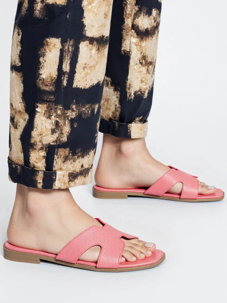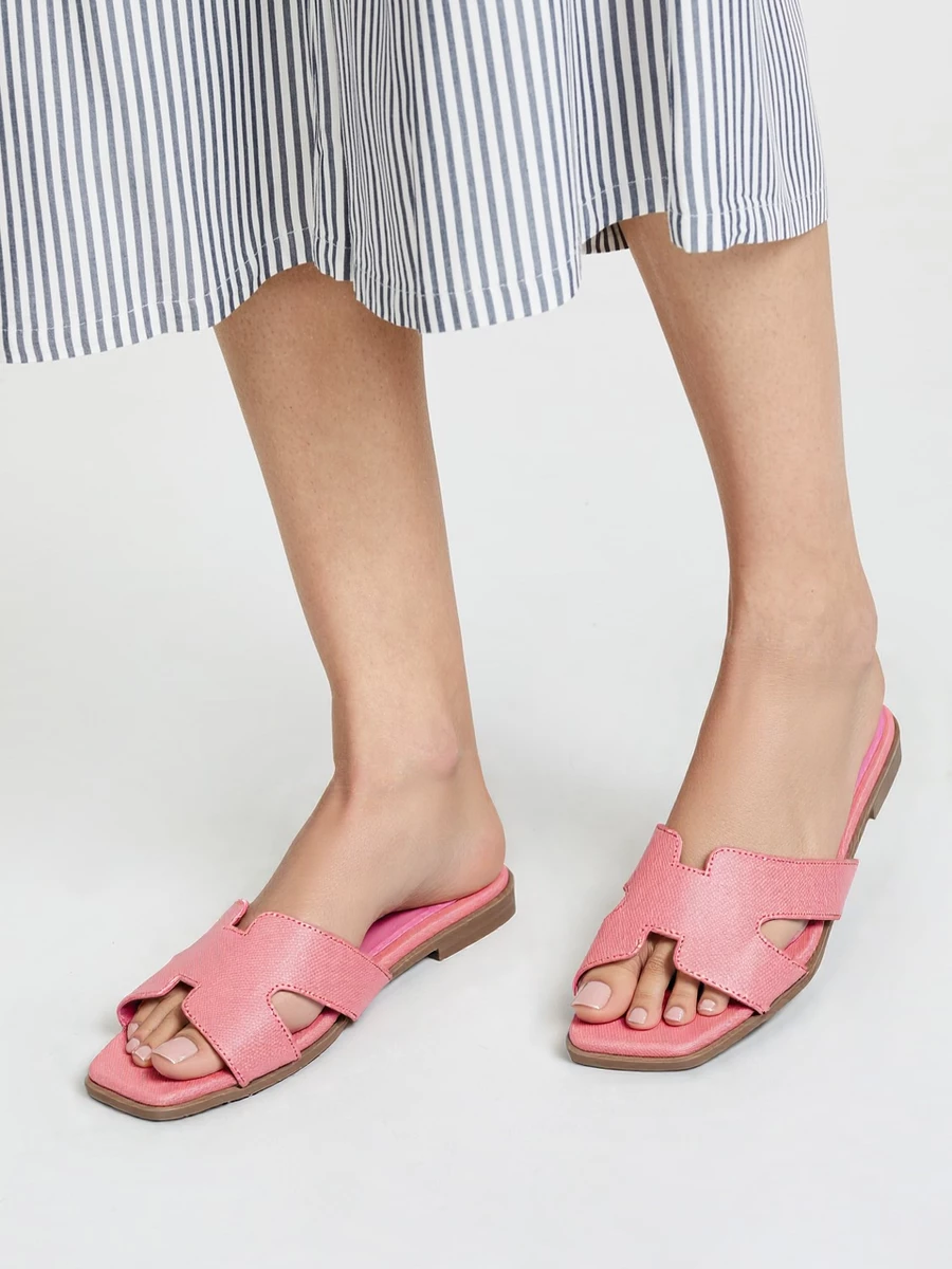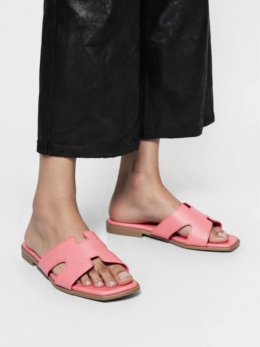 Klapki w kolorze FUSHIA (fuksja) to odważna propozycja na ciepłe dni. Wierzch butów wykonany z materiału w intensywnym kolorze przyciąga uwagę i dodaje charakteru. Na płaskiej podeszwie, klapki te zapewniają wygodę przez cały dzień, idealnie pasując do letnich, kolorowych stylizacji.