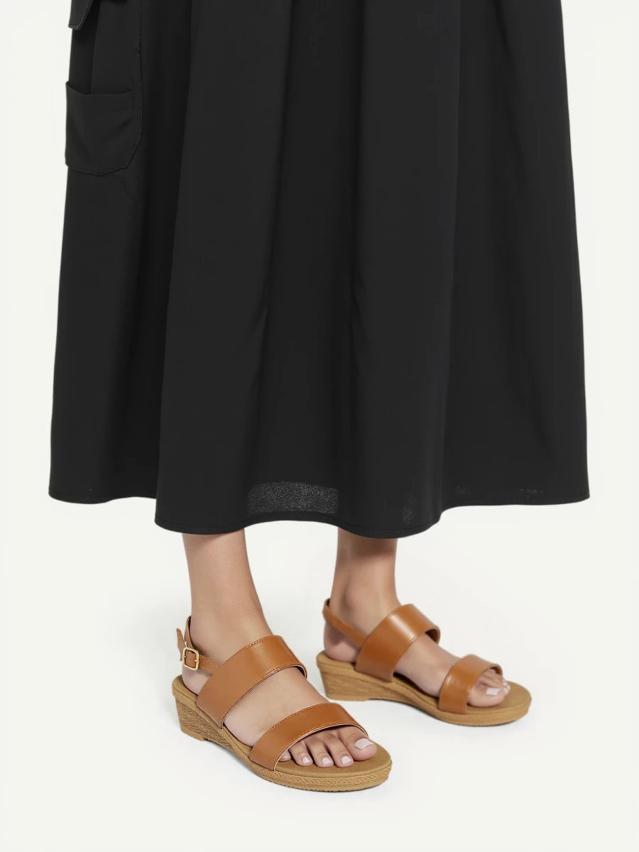 Sandały RAVEN w kolorze CAMEL (karmelowe) to letni klasyk w ciepłym, naturalnym odcieniu. Wygodne i lekkie, z regulowanym paskiem na pięcie oraz elastyczną podeszwą na niskim koturnie. Ich ponadczasowy design sprawdzi się zarówno w codziennych stylizacjach, jak i podczas letnich wyjazdów.