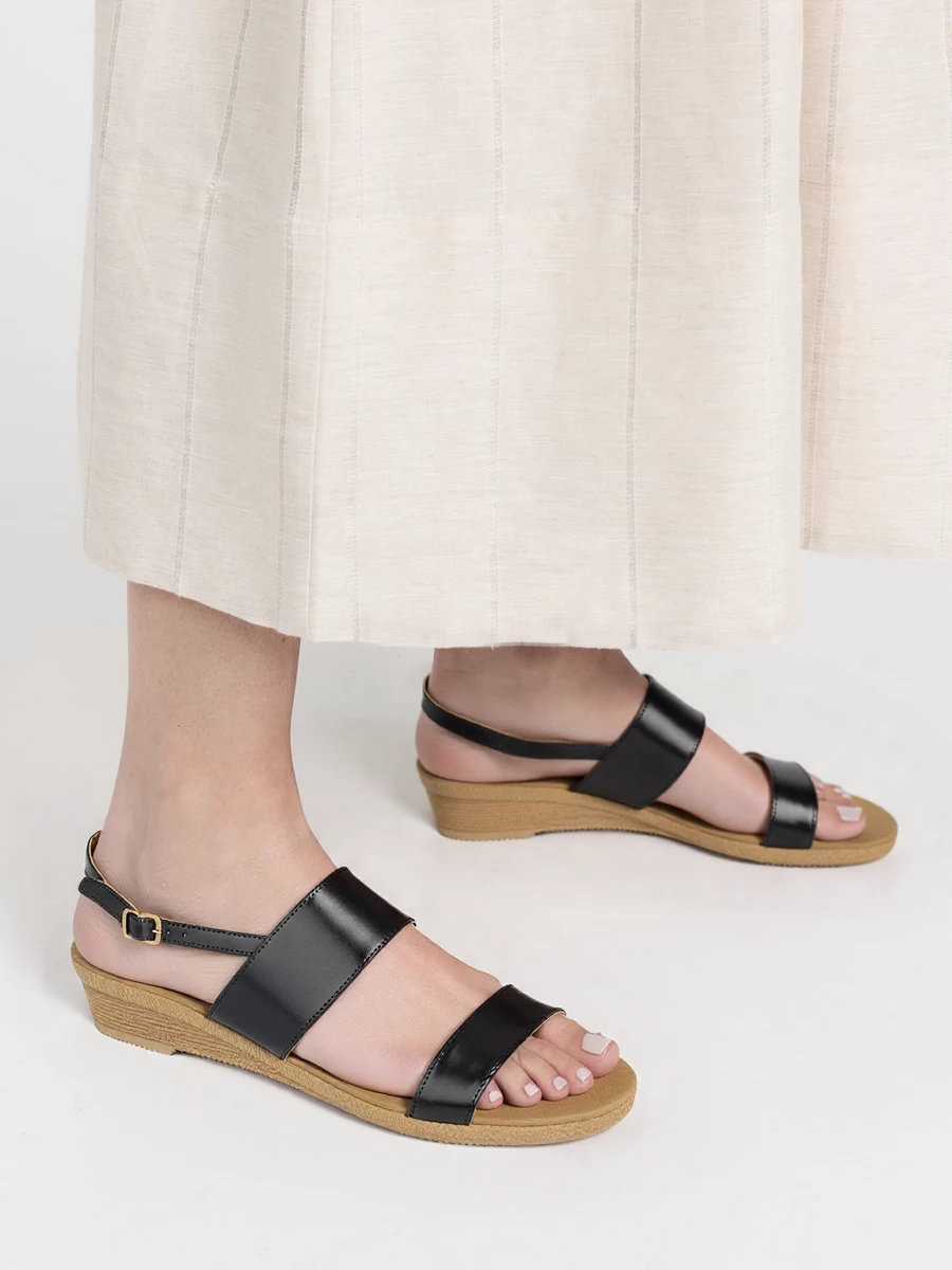 Sandały RAVEN w kolorze BLACK (czarne) to uniwersalny model, który pasuje do wszystkiego. Dwa proste paski w połączeniu z koturnem i sprzączką tworzą minimalistyczny, a zarazem bardzo wygodny fason. Idealne do casualowych outfitów, na co dzień i na dłuższe spacery.