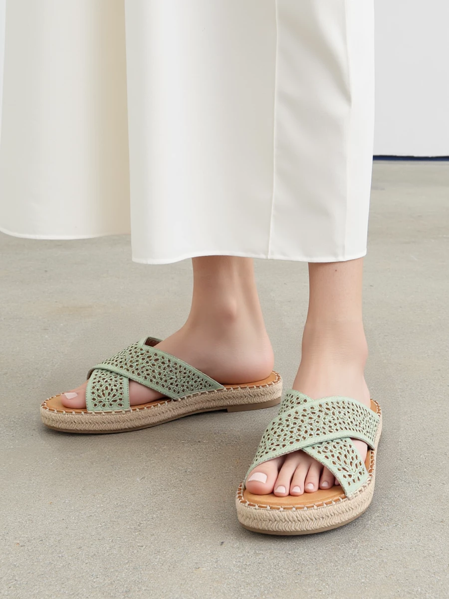 Klapki MIRA w kolorze GREEN (zielone) to oryginalna propozycja na lato, która przyciąga wzrok. Wykonane z wysokiej jakości materiałów, z szerokim paskiem, który zapewnia komfort oraz nowoczesny wygląd. Zielony kolor nadaje butom świeżości, a lekkie wykonanie i wygodna podeszwa sprawiają, że są idealne na ciepłe dni.