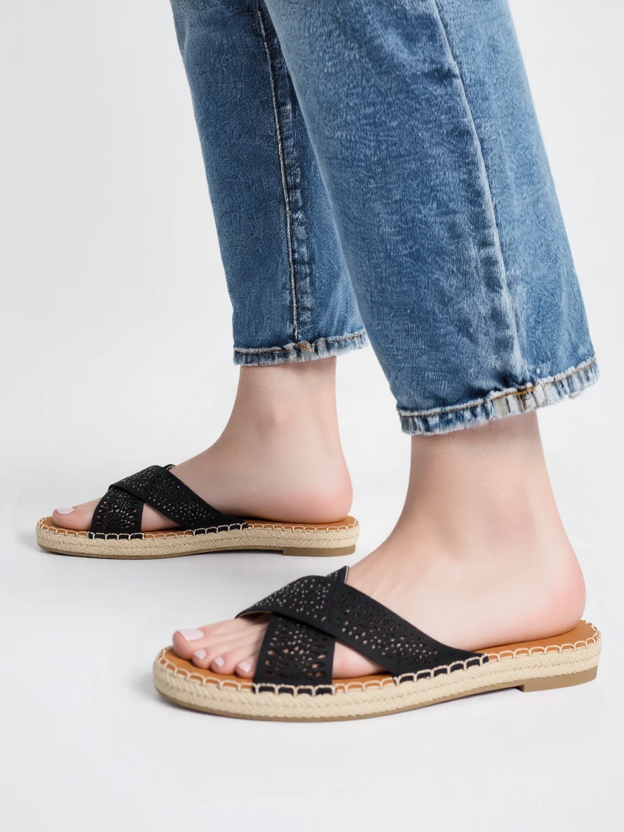 Klapki MIRA w kolorze BLACK (czarne) to klasyczna elegancja na lato. Wykonane z wysokiej jakości materiałów, te klapki charakteryzują się prostym, ale efektownym designem. Szeroki pasek zapewnia wygodę, a czarny kolor doskonale pasuje do wielu stylizacji. Idealne na letnie wyjścia, spacery czy codzienne spotkania.