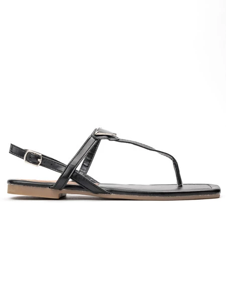 Damskie Sandały RAVEN BLACK to modna interpretacja klasycznych japonek w eleganckim, minimalistycznym wydaniu. Cienkie paski wykonane z połyskującej ekoskóry w kolorze czarnym subtelnie oplatają stopę, a geometryczne przeszycia i kwadratowy nosek dodają nowoczesności. Niski obcas i płaska, elastyczna podeszwa zapewniają wygodę podczas noszenia. Idealne na lato – do sukienek, lnianych spodni czy stylizacji boho.