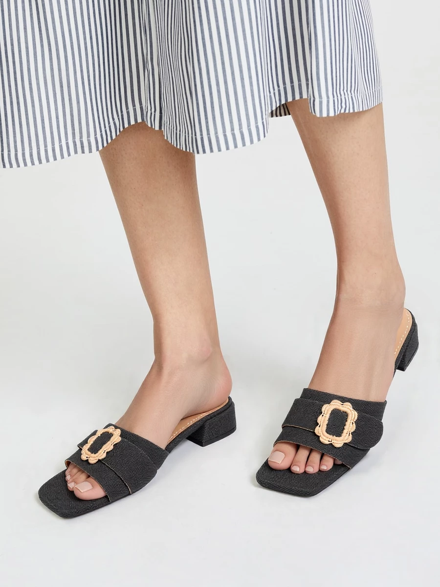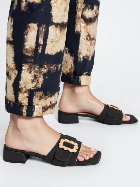 Klapki Eleganto to synonim elegancji i komfortu w miejskim stylu. Idealne do noszenia na co dzień dzięki płaskiej, stabilnej podeszwie i miękkiemu wnętrzu. Czarne wykonanie z subtelną, złotą klamrą dodaje uroku i pozwala na łatwe łączenie z różnorodną garderobą.