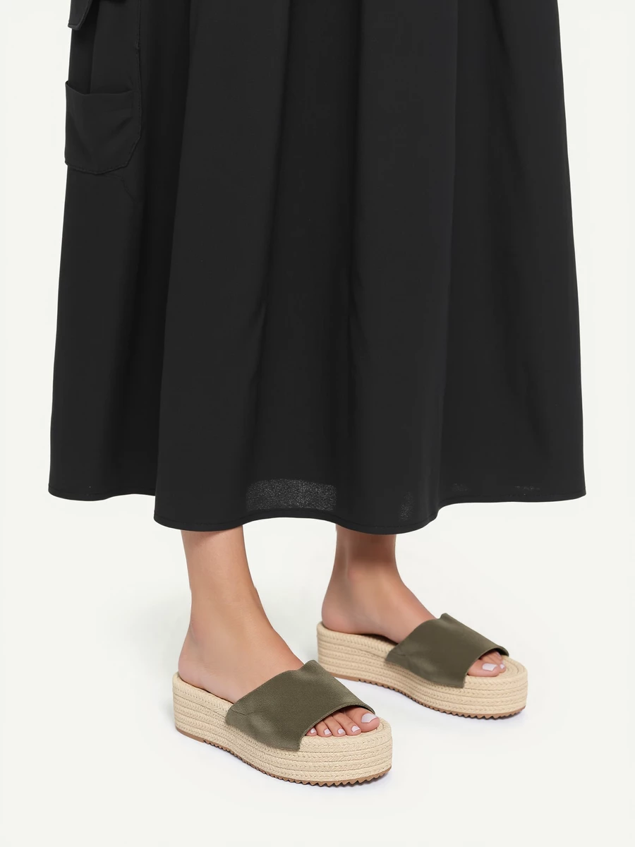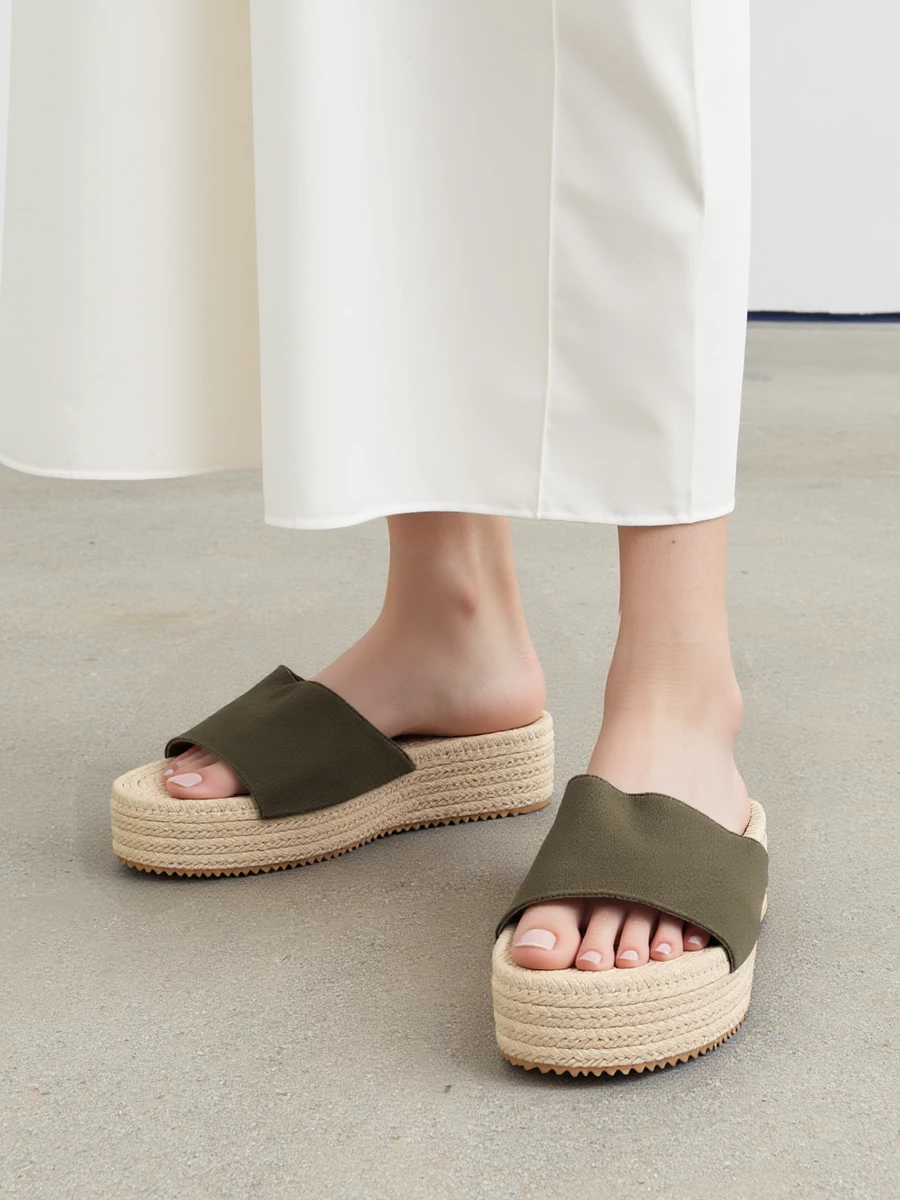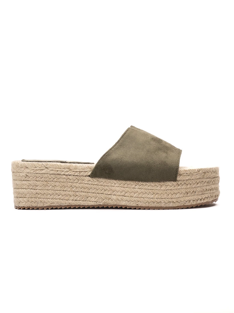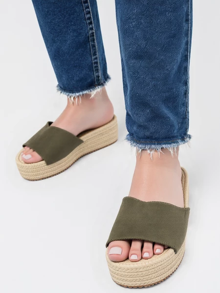 Modne i wygodne klapki Estilo w kolorze zielony, idealne dla każdego, kto ceni sobie zarówno styl, jak i komfort. Konstrukcja z miękkiego zamszu zapewnia wyjątkową wygodę podczas użytkowania, natomiast pleciona podeszwa espadrylowa dodaje butom unikalnego charakteru. Te klapki świetnie sprawdzą się w cieplejsze dni, będą pasować zarówno do casualowych jak i nieco bardziej eleganckich letnich stylizacji.