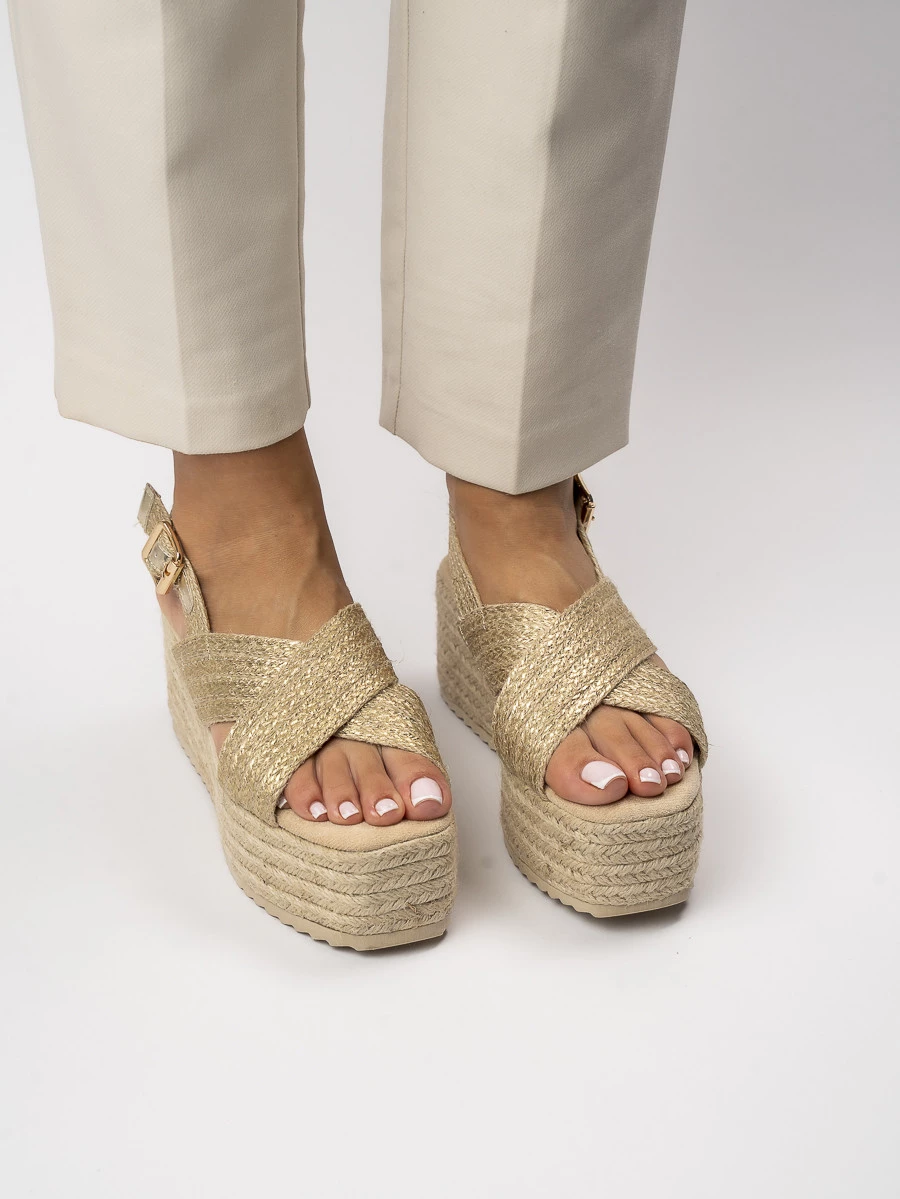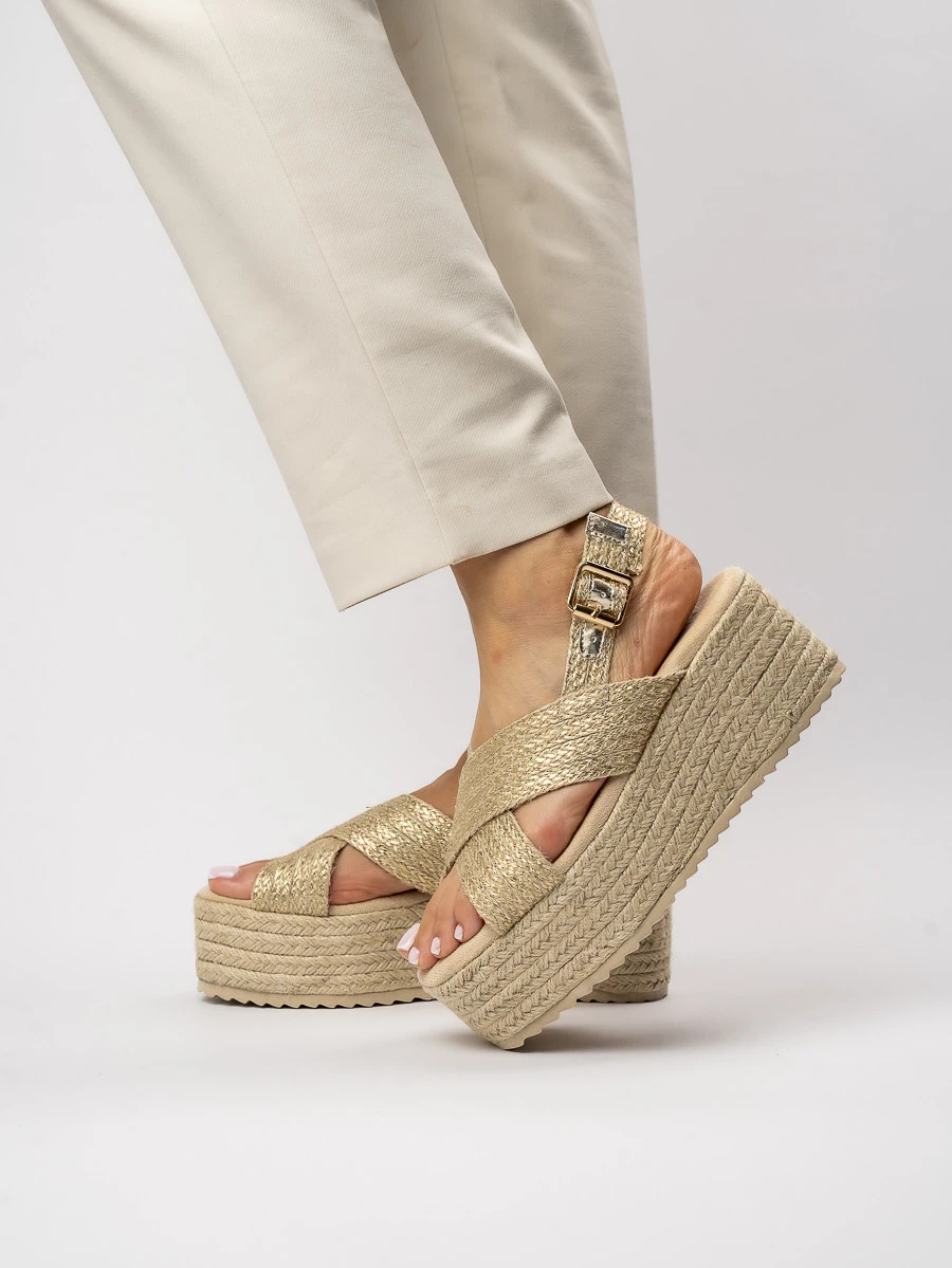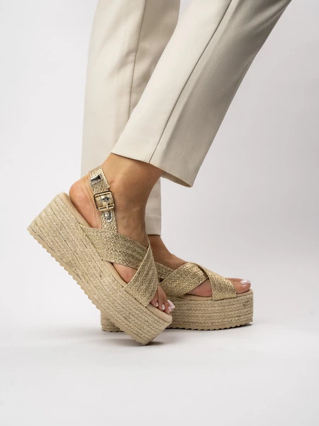Sandały Aurelia Gold to wyjątkowe obuwie na platformie, które łączy elegancję ze stylowym designem. Wykonane z dbałością o każdy detal, złote sandały świetnie nadają się na letnie przyjęcia i codzienne wyjścia. Dzięki solidmym paskom i wygodnej platformie, oferują komfort noszenia przez cały dzień. Te sandały w kolorze gold podkreślą każdą stylizację, przyciągając uwagę swym niepowtarzalnym wyglądem. Idealne na lato, zarówno na plażę, jak i na miasto.