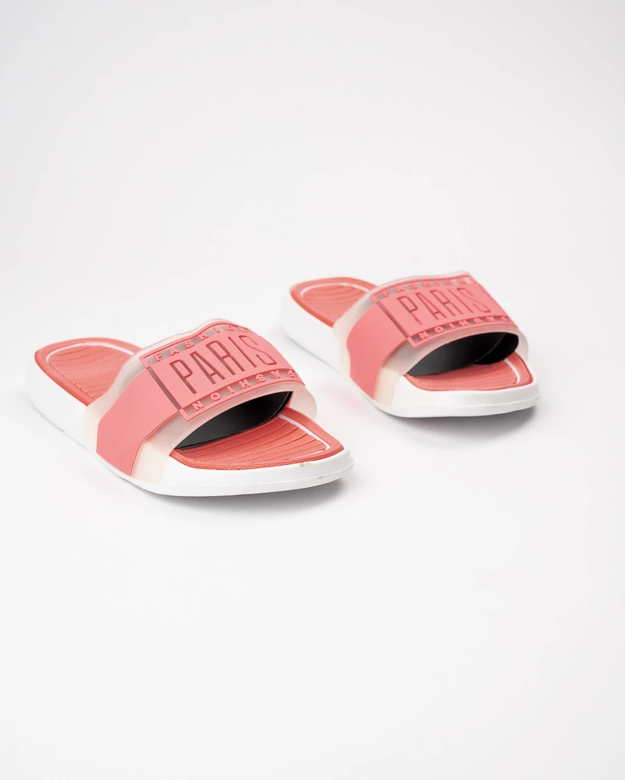 Te różowe klapki to idealny wybór na lato, łączący wygodę i styl. Szeroki pasek z przezroczystym akcentem i wyraźnym napisem "PARIS" nadaje im modnego, miejskiego charakteru. Profilowana podeszwa z miękkiego tworzywa dba o komfort i amortyzację podczas spacerów. Doskonałe na co dzień, do domu i na plażę.