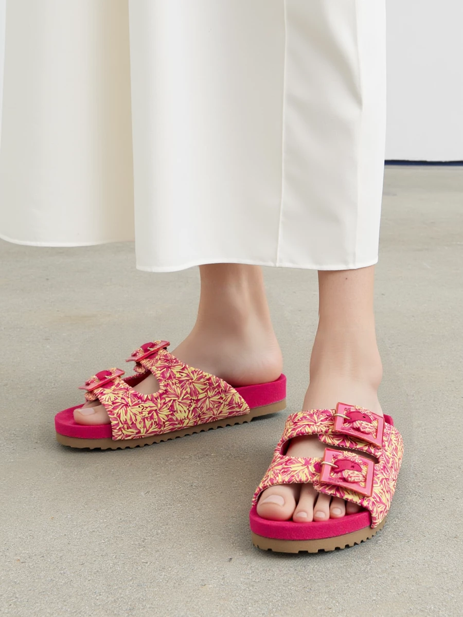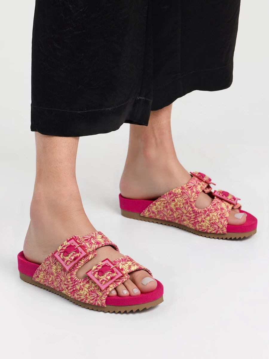 Stylowe sandały damskie wykonane z wysokiej jakości materiałów, zapewniających komfort noszenia przez cały dzień. Nowoczesny design i staranne wykończenie sprawiają, że buty są idealne na różne okazje. Wygodna konstrukcja zapewnia stabilność i dopasowanie do stopy. Te wyjątkowe buty damskie dostępne są w kolorze Fushia.