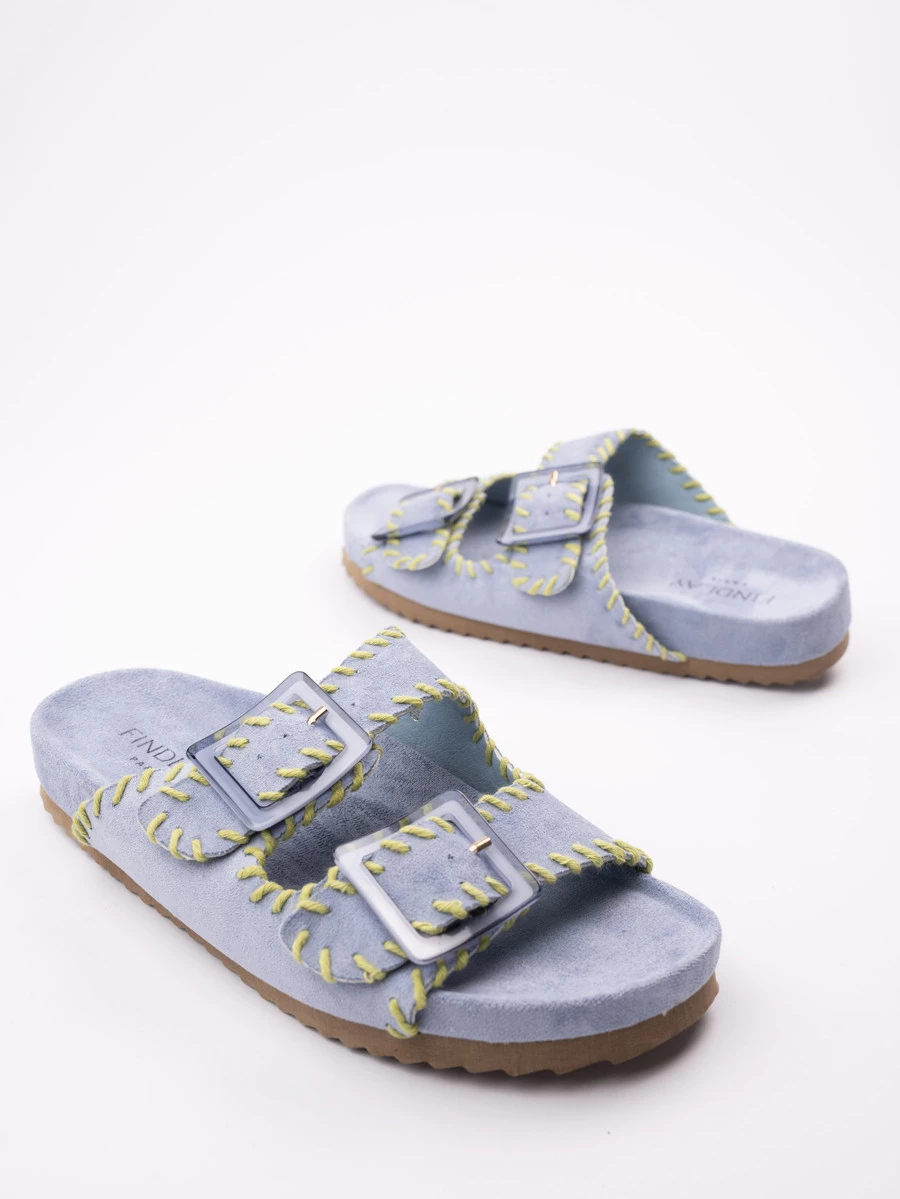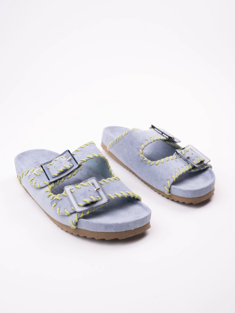 Klapki płaskie zamszowe z podwójną klamrą w kolorze Blue