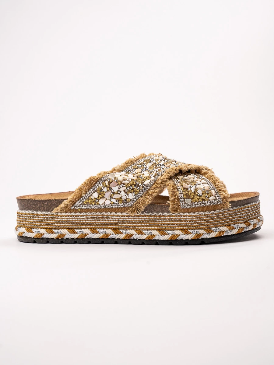 Odkryj styl i komfort dzięki Klapkom Etnicznym Aura w odcieniu khaki.