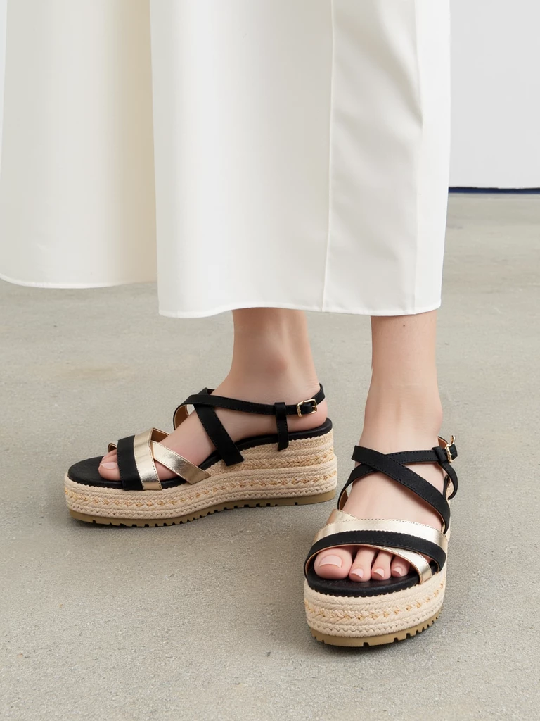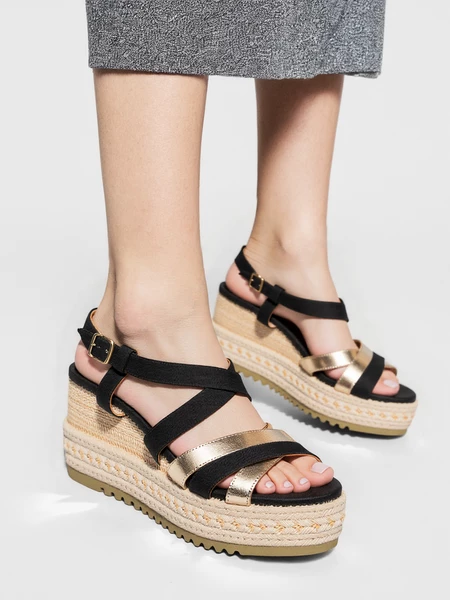 • Modne Sandały na koturnie damskie w kolorze Black.