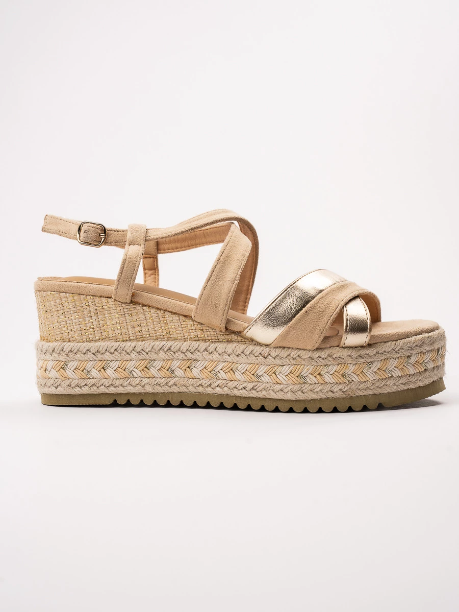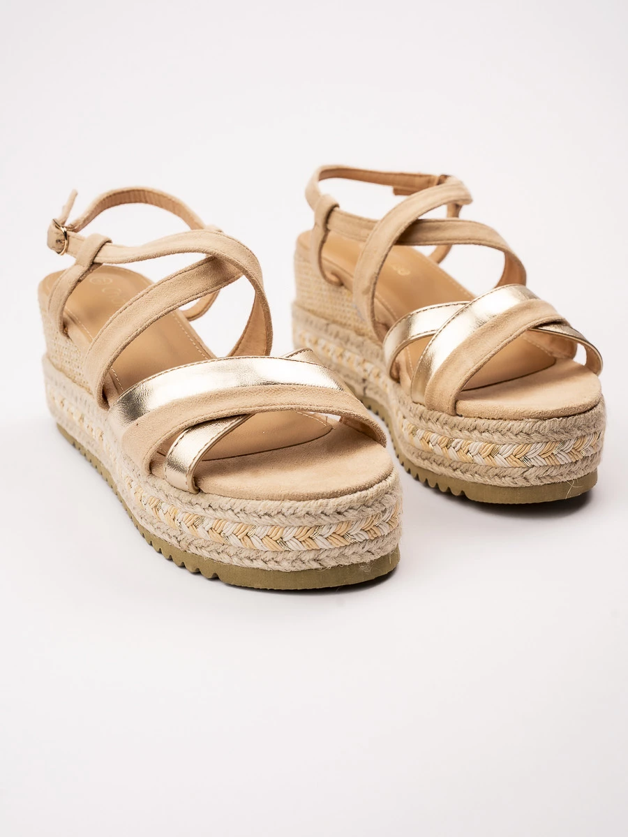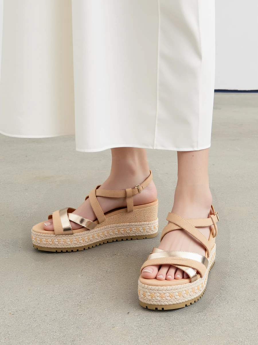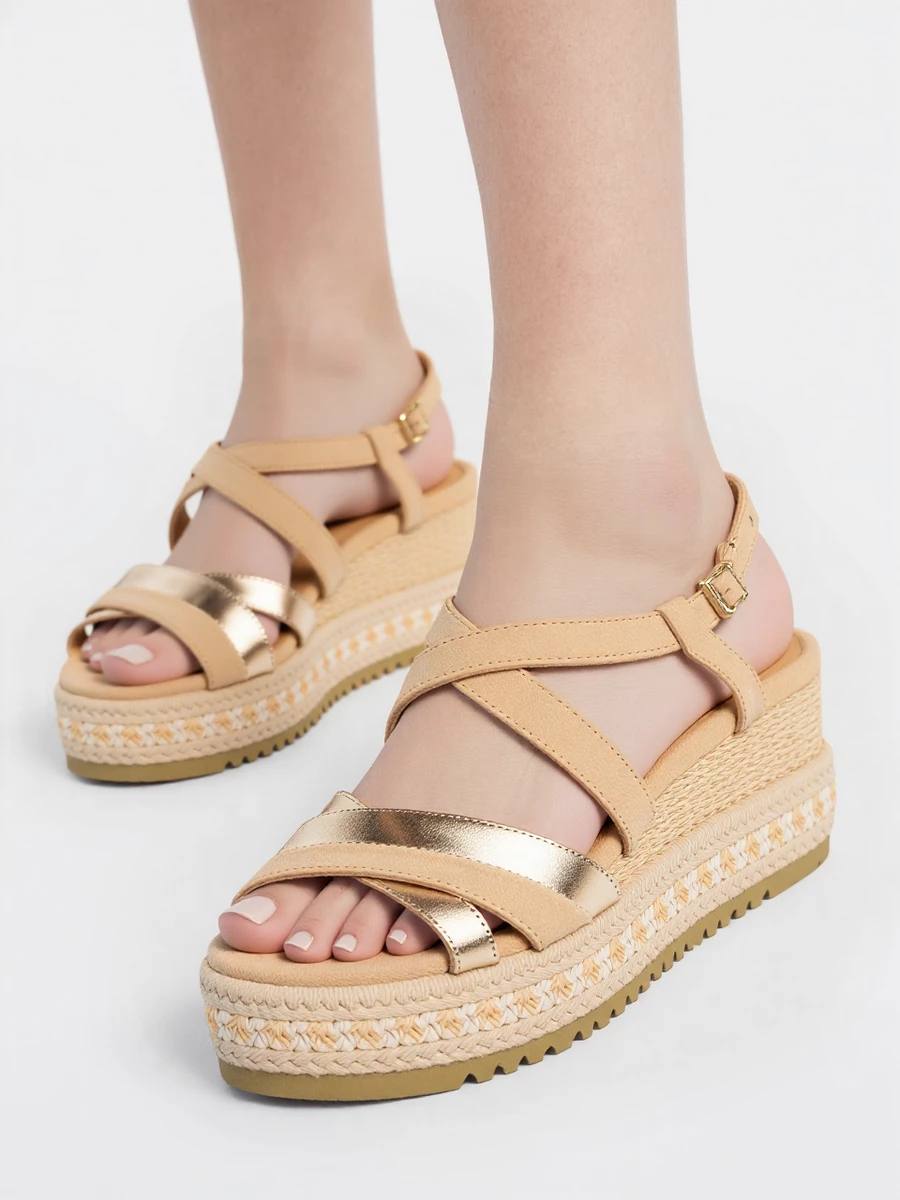 Sandały na koturnie z plecionym koturnem i paskami w kolorze Apricot