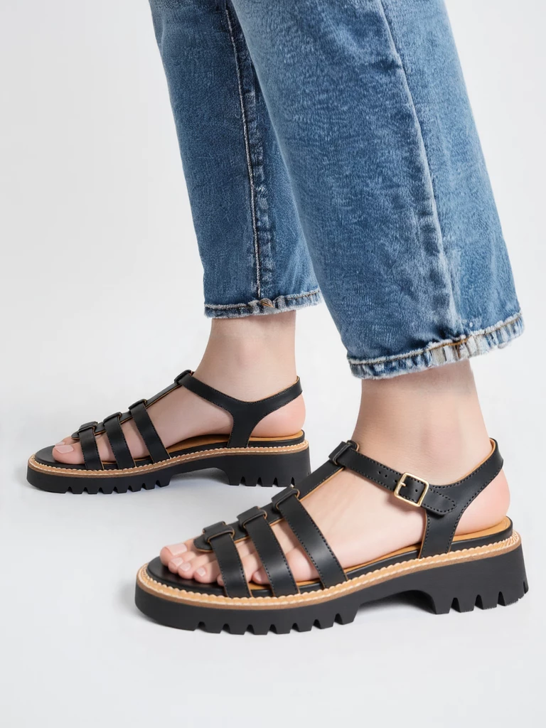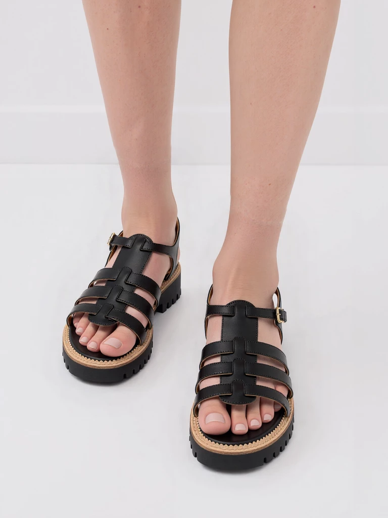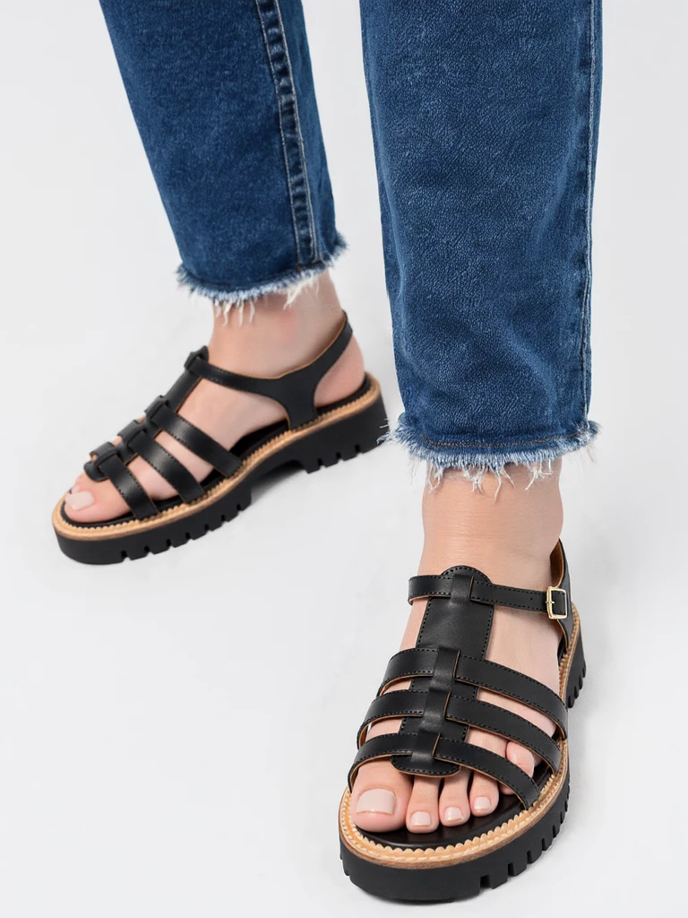 Te sandały casualowe z paskami w kolorze Black to idealne połączenie stylu i wygody. Wykonane z wysokiej jakości materiałów, zapewniają komfort noszenia przez cały dzień. Gruba podeszwa dodaje nowoczesnego wyglądu, a czarny kolor sprawia, że są uniwersalne i pasują do wielu stylizacji.