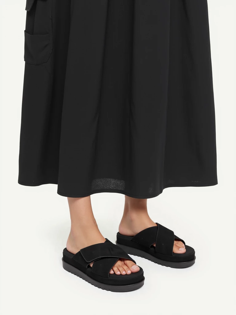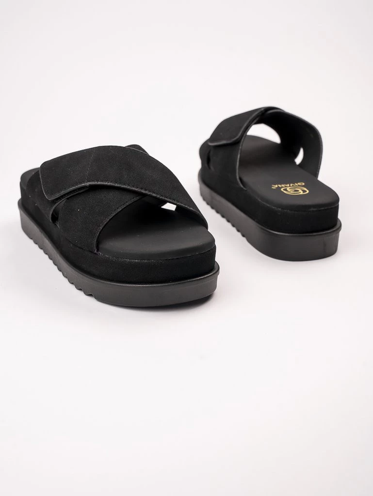 Klapki na koturnie z szerokim paskiem w kolorze Black