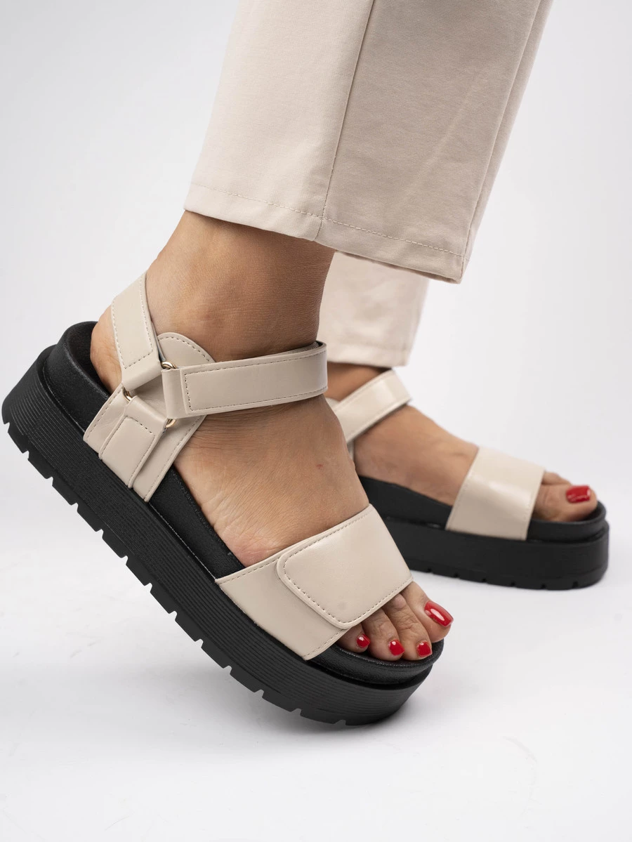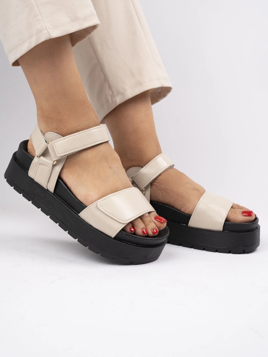 Odkryj wygodę i styl dzięki tym sandałom płaskim z rzepem, które są idealnym wyborem na letnie dni. Wykonane z wysokiej jakości skóry, oferują miękki i trwały pasek, który delikatnie obejmuje stopę. Gruba podeszwa dodaje nie tylko nowoczesnego wyglądu, ale także zapewnia doskonałą amortyzację na każdym kroku. Zapięcie na rzep ułatwia dopasowanie butów do indywidualnych potrzeb, oferując jednocześnie szybkie zakładanie i zdejmowanie. Jasny, klasyczny kolor Beige sprawia, że sandały są uniwersalnym dodatkiem do wielu letnich stylizacji, nadając im elegancji i lekkości.