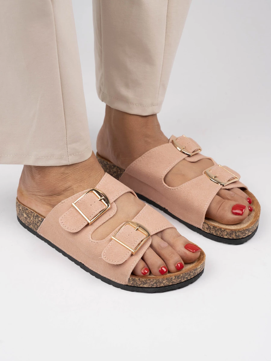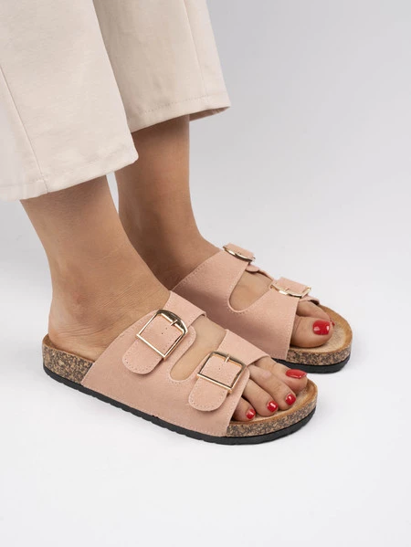 Klapki damskie z zamszu z regulowanymi klamrami w kolorze Pink