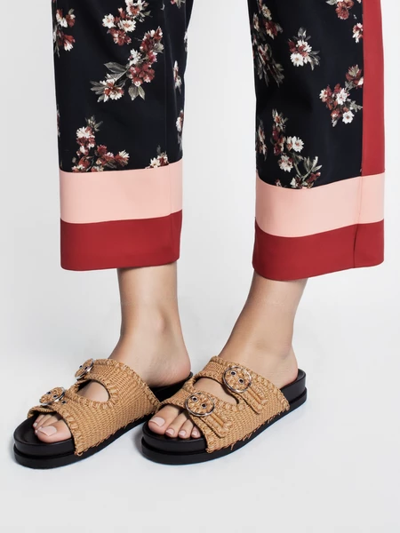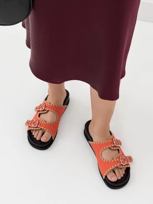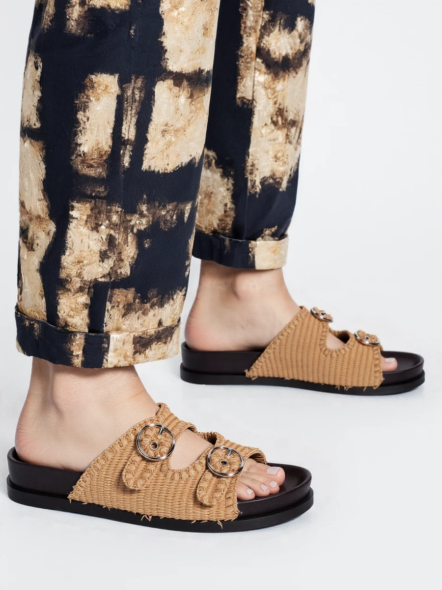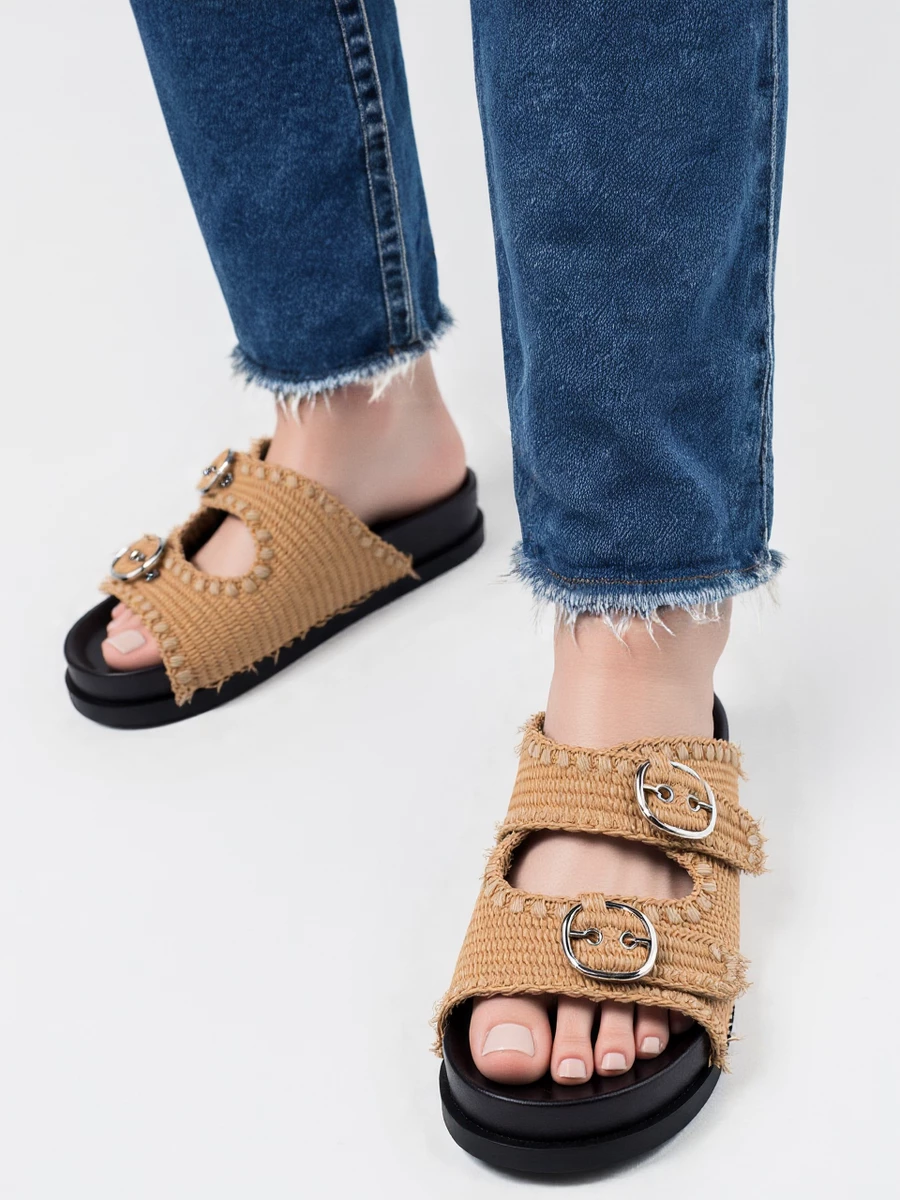 Klapki damskie z podwójną klamrą w kolorze Camel
