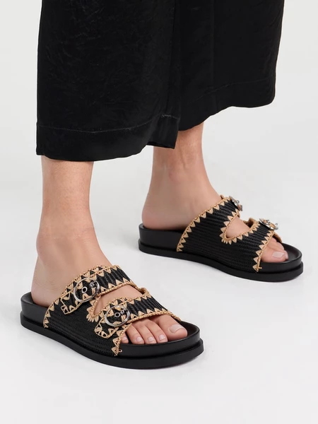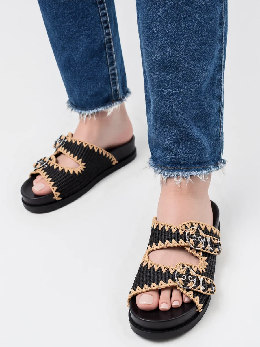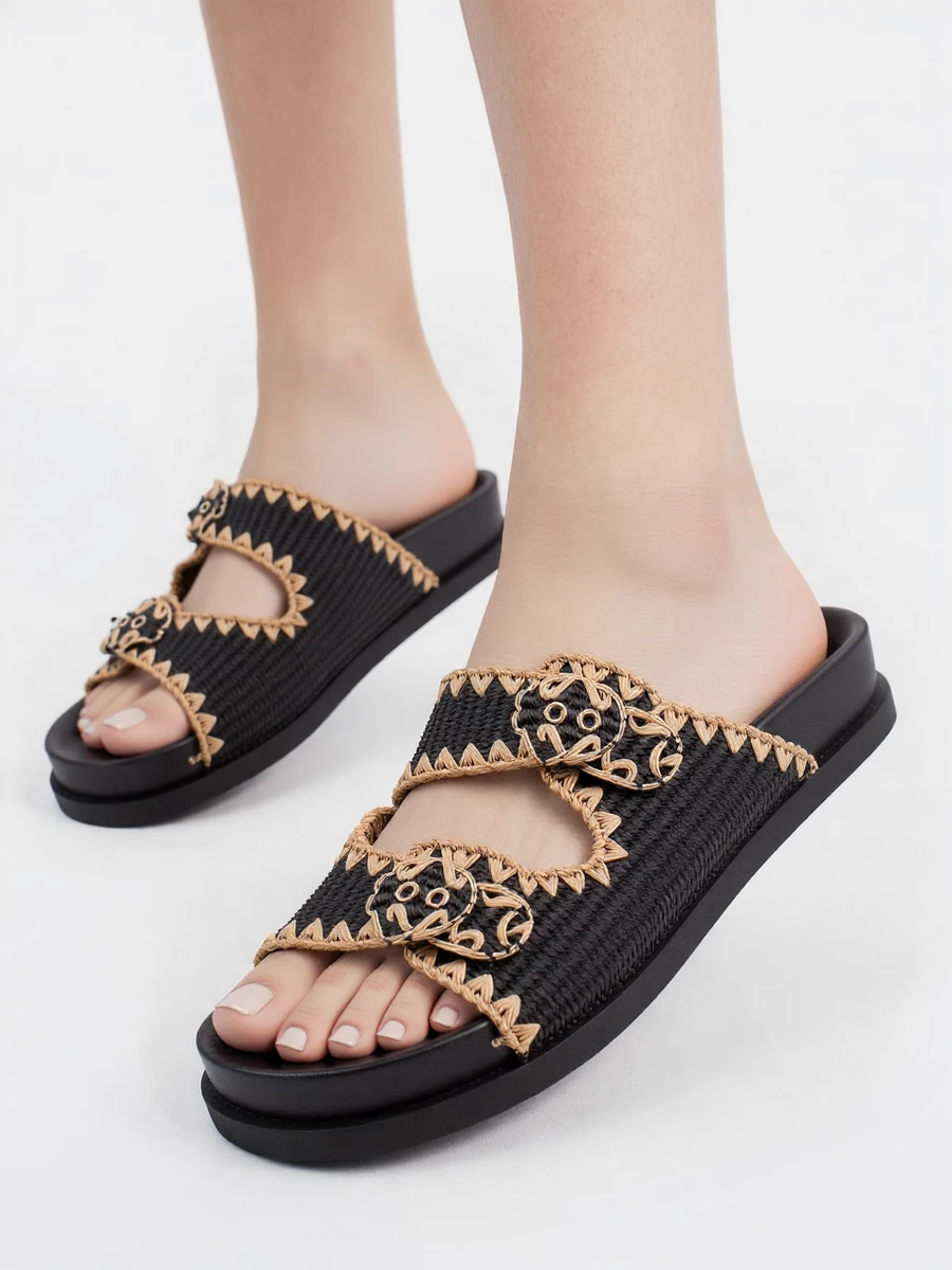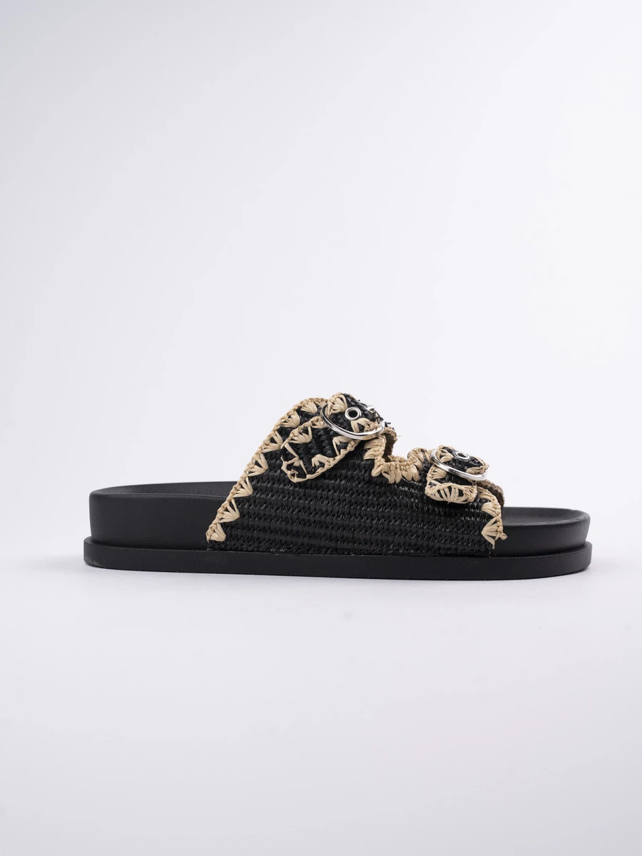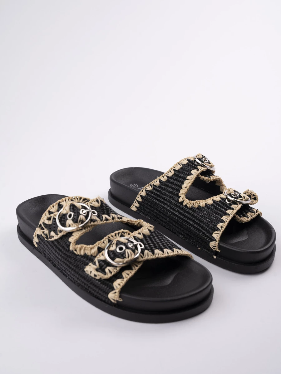 Klapki damskie z plecionką i klamrami Black